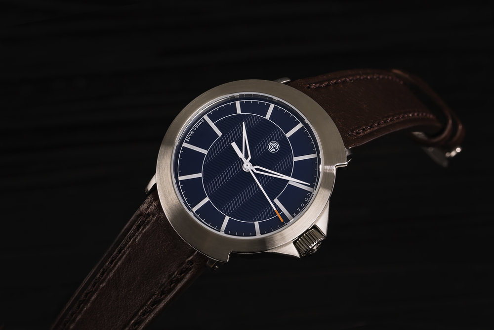 Quality is something that will be immediately apparent with the Spiral Watch from Codek and all of the timepieces that this San Francisco based brand produce are manufactured and assembled in Switzerland, with the straps being crafted in the USA, and the timepieces are tested and regulated by an AWCI certified watchmaker in California to ensure they meet the required quality each and every time. The dial is one of the most aesthetically appealing you’re likely to encounter and has hour indices which add a playful tension as they do not conform to a single standard length. The embossed waves shimmer in different lighting environments — at times blending into the background, and at other times forming the highlight of the dial.