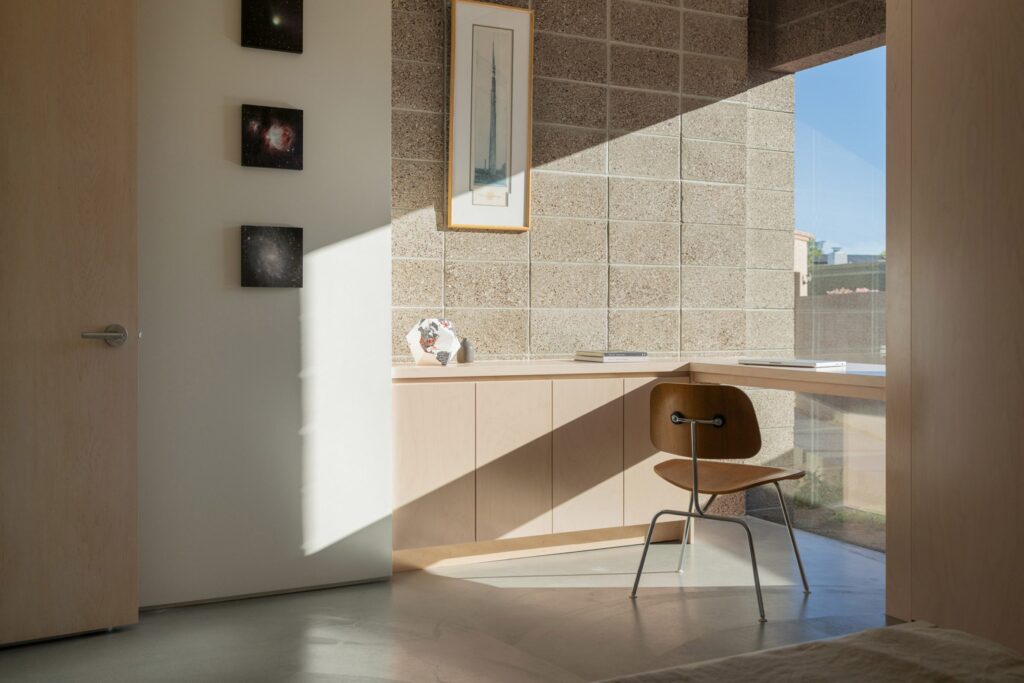 The way the harsh Arizona sunlight plays across the raw concrete textures throughout the day gives the home an ever-changing, dynamic energy.