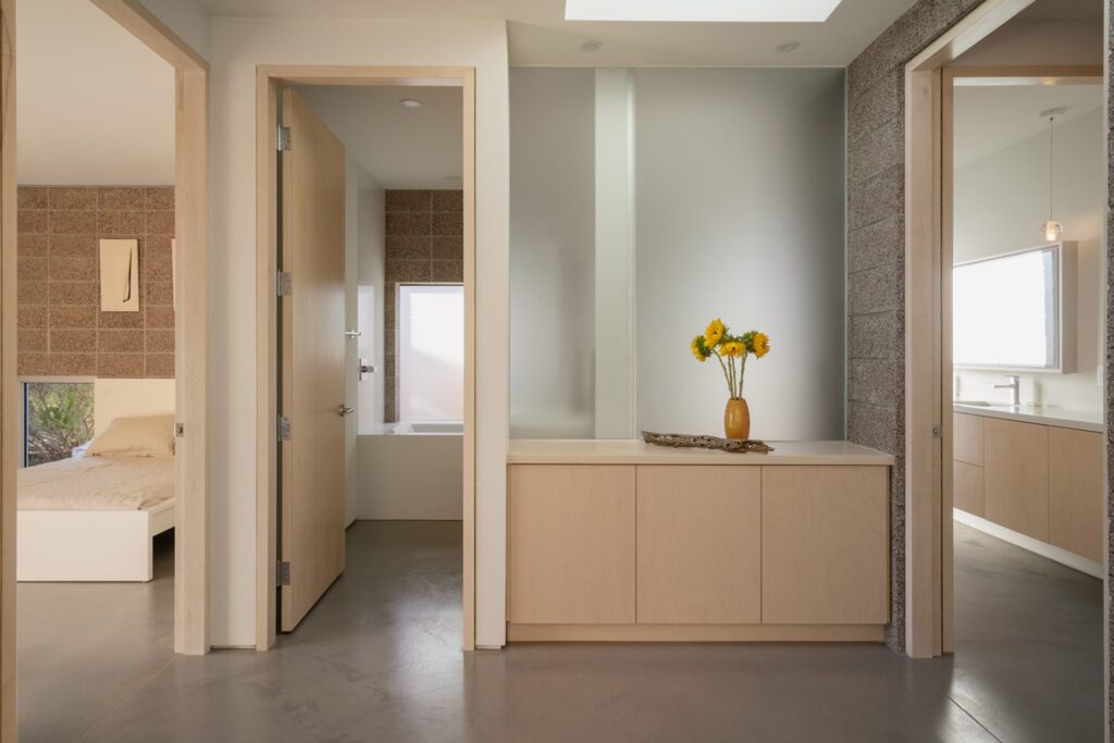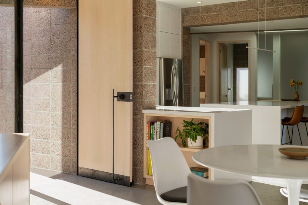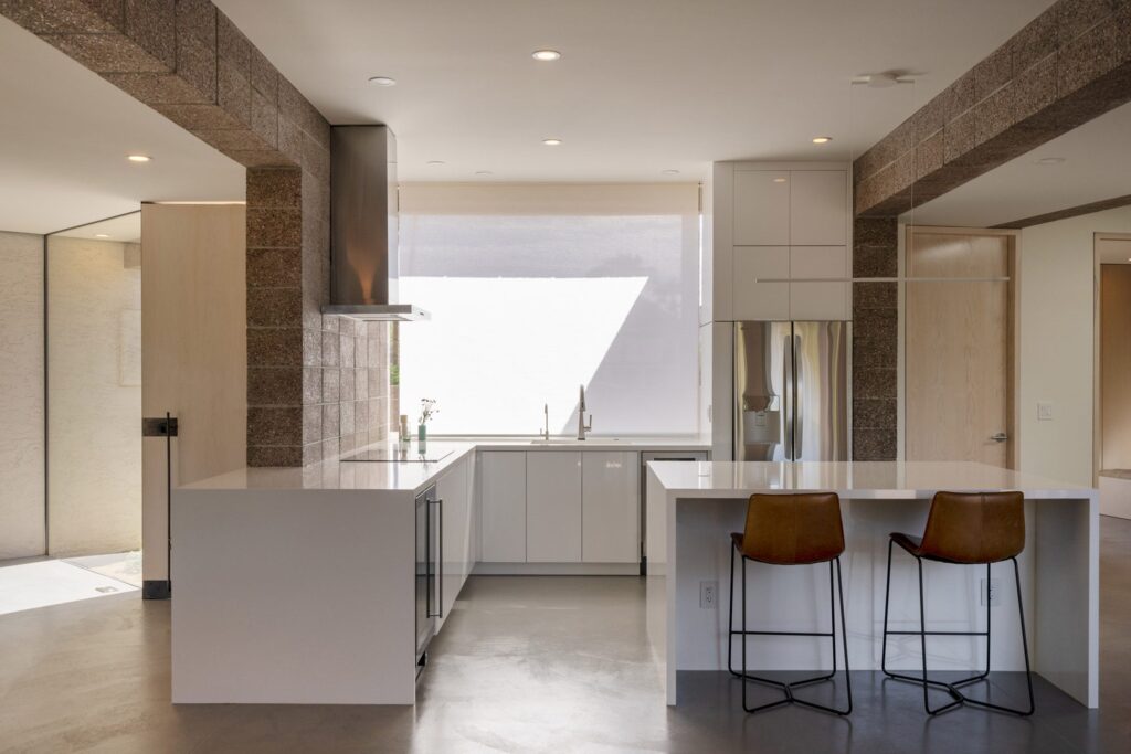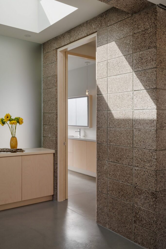 From an engineering standpoint, the home is just as impressive as its aesthetic. Because the architects committed to using continuous CMU blocks—even engineering strategic spans to allow for incredible self-supporting masonry ceilings—traditional drywall cavities were completely eliminated.