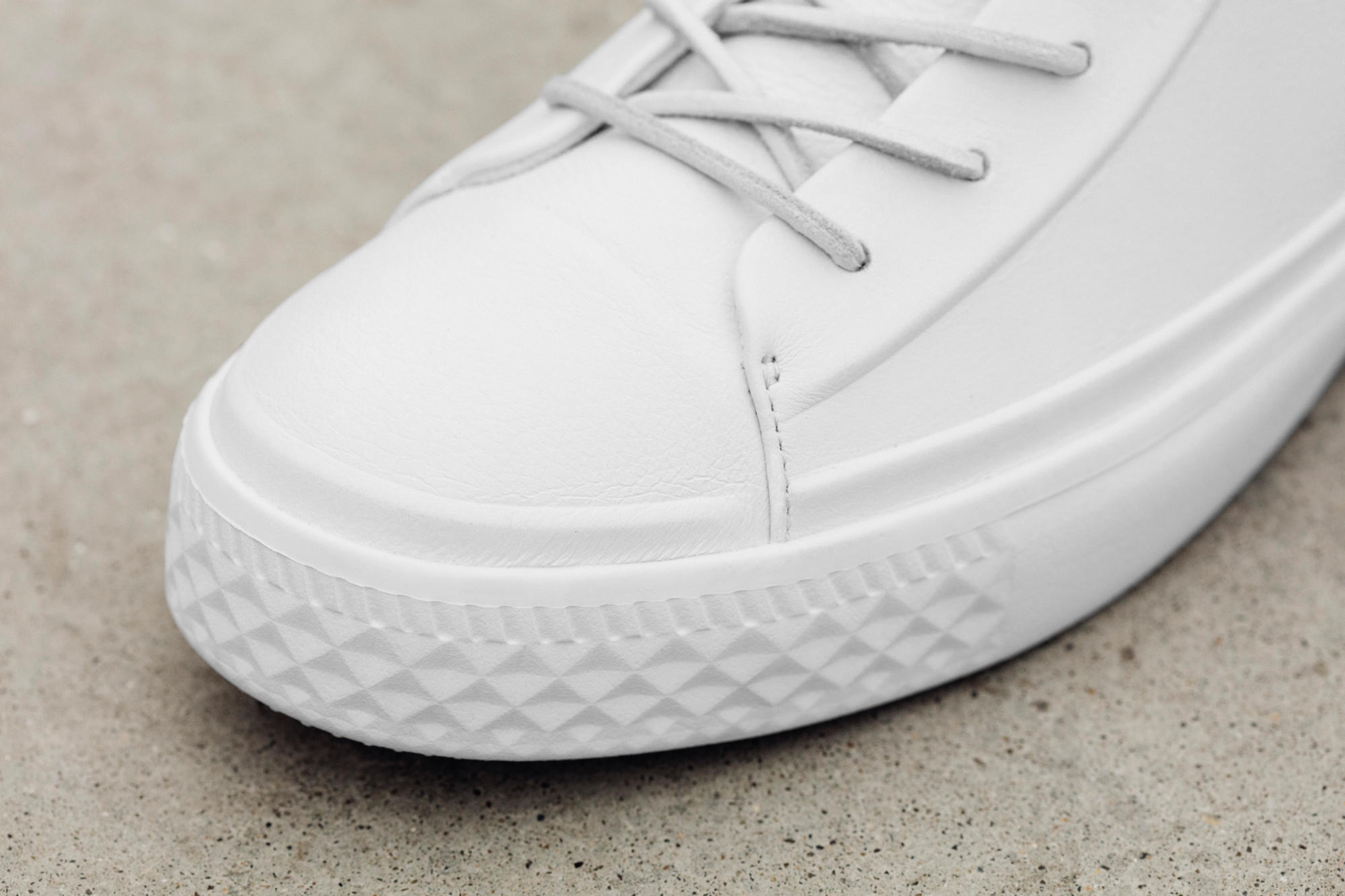 Inspired by the company’s heritage that is over a century old, the Modern Lux comes in all tonal white or all tonal black and constructed in soft and buttery moulded leather for that opulent feel. Notable differences with the Converse Chuck Taylor Modern Sneakers from the original model is the rubber toe cap which has been removed and in place the same moulded leather used for the upper panels.