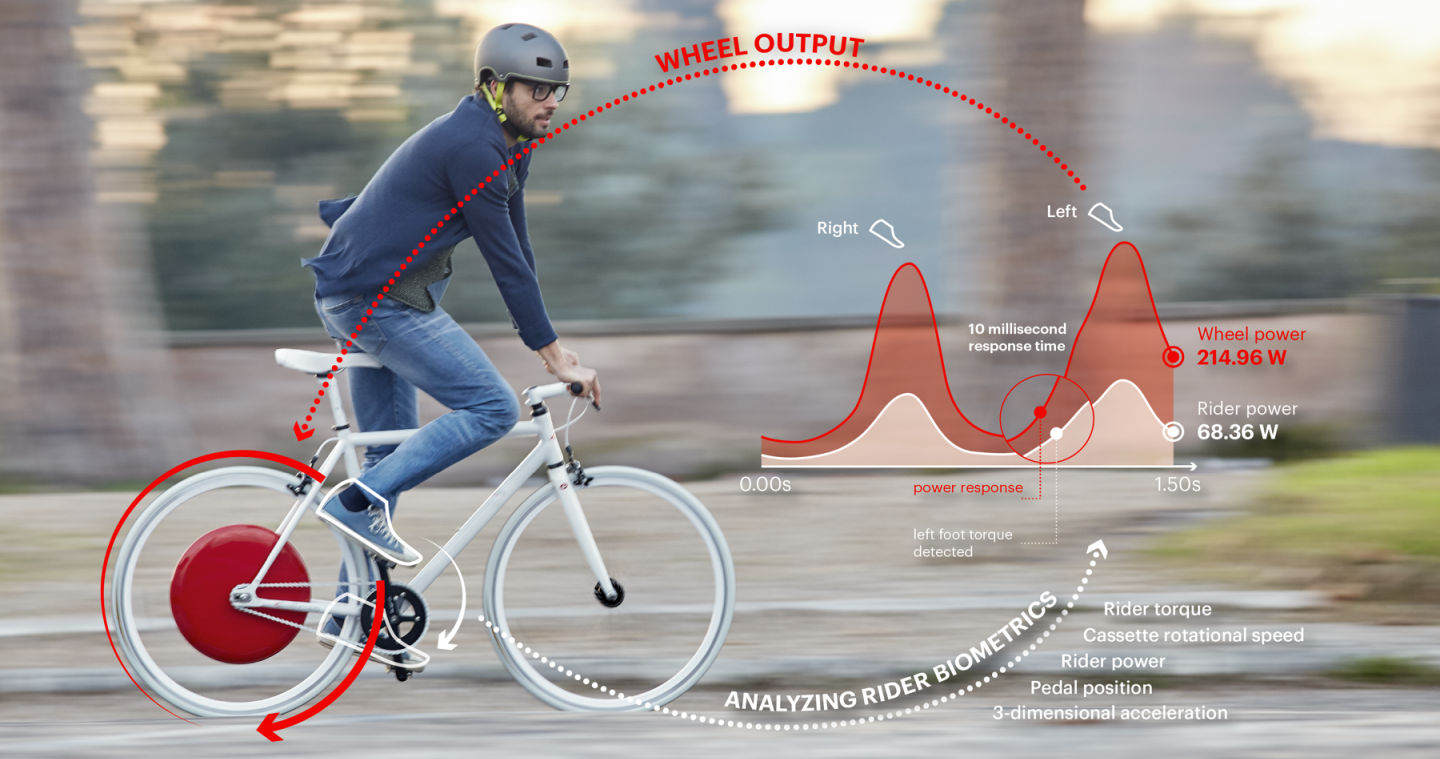 It’s mighty impressive how much is going on beneath the seemingly benign Copenhagen Wheel such as the fact that when you pedal, it will sense, analyse and respond to your torque, power, speed, and pedal position over 100 times per second, which gives you over 10X more power than conventional pedalling seamlessly.
