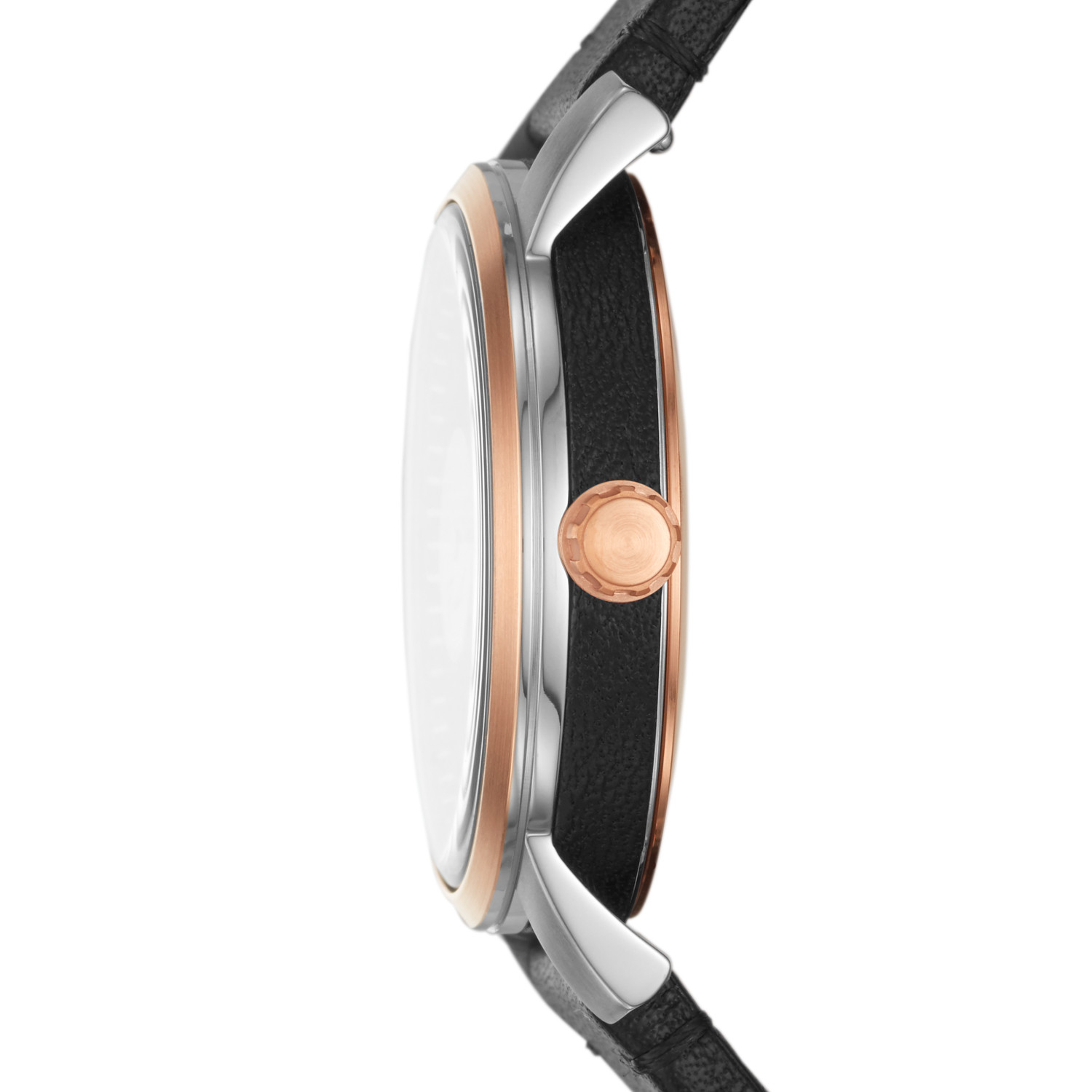 There is a distinctly vintage vibe to the Crosley x Fossil Watches that immediately adds to their appeal and each of the limited edition timepieces has a 1950s-style package in black, cool grey, and rose gold printing. An extra touch of cool comes from the fact that the packaging coordinates perfectly with the special edition record player that is being released alongside the two watches. They take their design inspiration from Crosley’s iconic turntables and the dials are grooved like a record, and the hour and minute hands are topped by a neat seconds indicator that is a circular disc designed to resemble the centrally located label of a vinyl record.