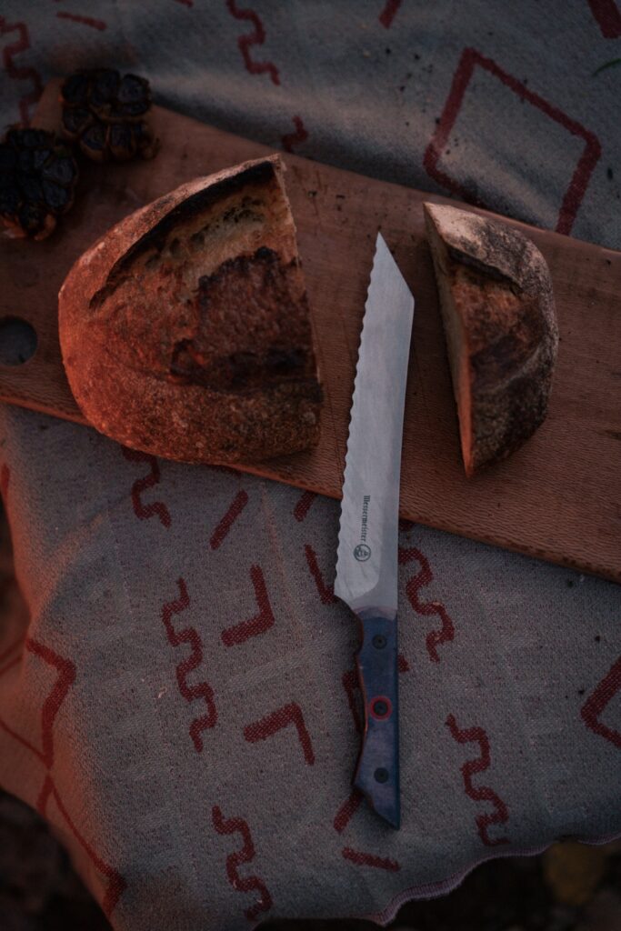 At the heart of the collection sits a stunning set of Overland chef knives. Messermeister has outfitted these blades with limited-edition Denim Micarta handles. If you aren’t familiar with Micarta, it’s a composite known for its extreme durability and grip, even when wet—perfect for the unpredictable conditions of outdoor cooking.