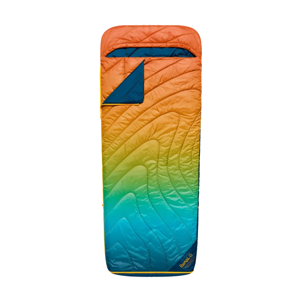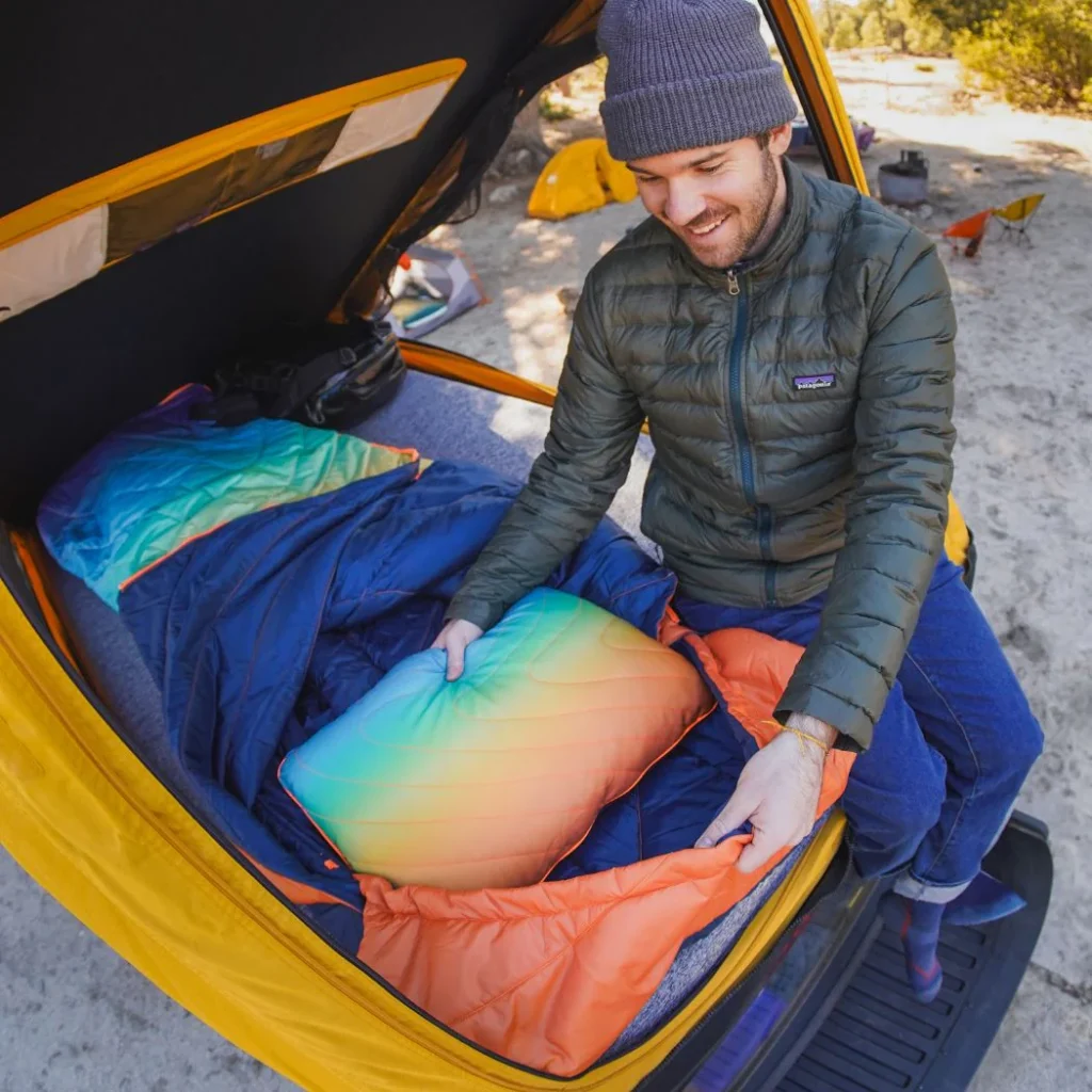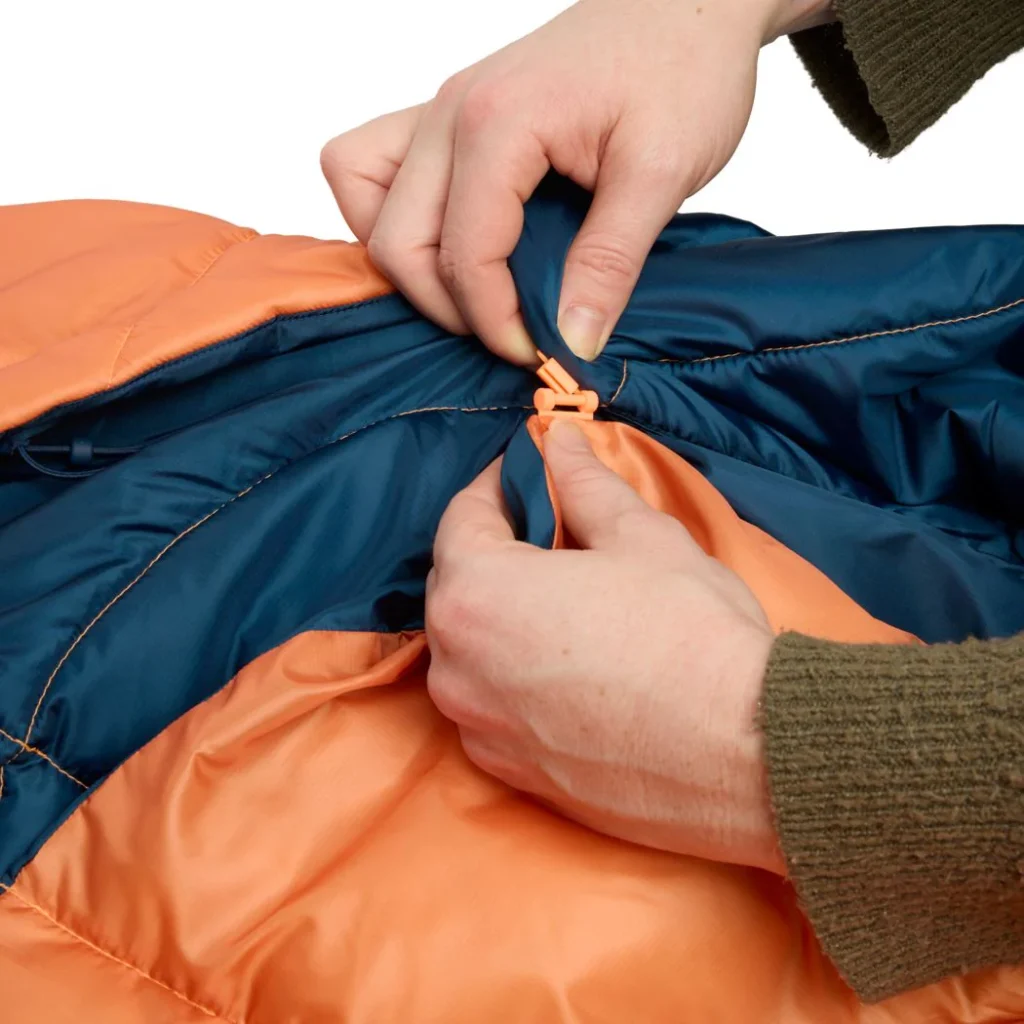 Beyond the unique wrapping system, the Wrap Sack is packed with thoughtful features designed for practical comfort. It includes a pillow pocket hood that integrates seamlessly with Rumpl Camp Pillows, Cape Clip® connections to secure layers or connect to Rumpl blankets for added warmth, and a full 2-way zipper panel that allows for crucial venting and freedom of movement when you need it.