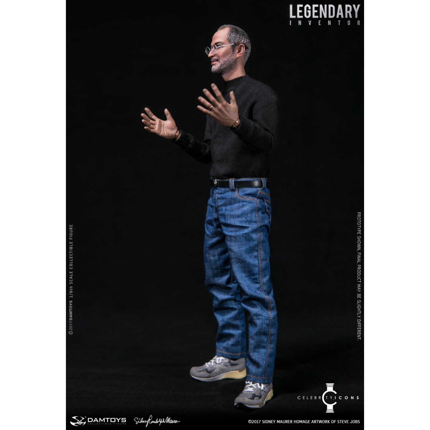 Somewhat excellently, you don’t just receive the Dam Toys Steve Jobs Figure when making this rather sizeable investment. It comes replete with a number of decidedly awesome add-ons which will add to the overall visual impact you can create with it. Just a few of the extras you can expect with this spiffing piece of design include 3 pairs of interchangeable hands (for recreating his iconic poses), 1 desktop computer, 1 laptop computer, 1 mouse and the legendary outfit which he so often wore on stage during his world famous presentations.