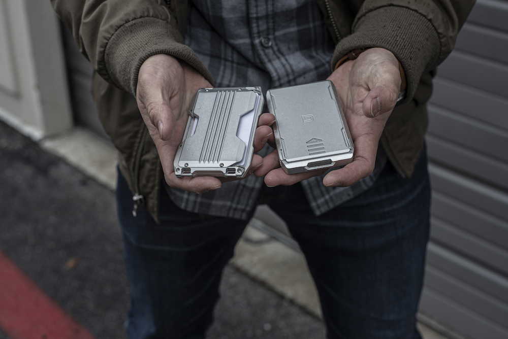 The adapters on the Dango A10 Adapt Wallet ($79) all share an innovative quick-release sliding back-plate that swiftly glides along the A10’s rail system. The rail system not only holds pocket adapters but it also double functions as an open ID window for one card which makes it a stand out performer in the wallet world. The A10 wallet chassis is made of machined 6061 aerospace-grade aluminium and anodized to perfection.
