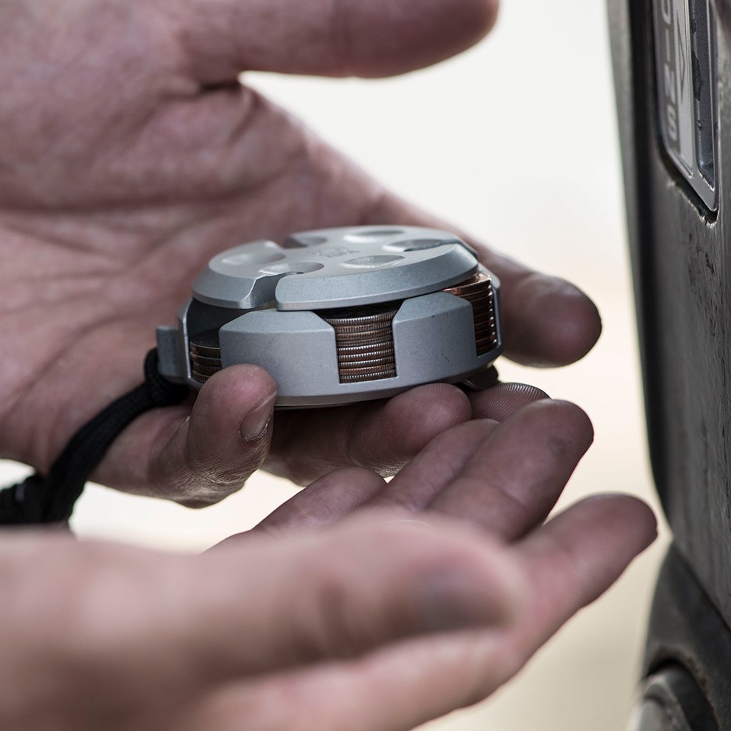 Made in the USA to exacting standards, the DANGO Coin Capsule has a loop hole for tethering attachments and making it a much more versatile and functional piece of EDC. The capsule itself is available in either an anodised jet black and satin silver colour way and you can choose the one that best fits in with the aesthetic of your other accessories such as wallet, phone and keychain. It will hold up to $5.44 – in the shape of 16 quarters, 10 dimes, 7 nickels and 9 pennies.