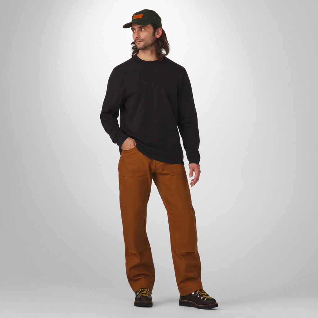 Made from 12-oz. cotton duck canvas, these durable and versatile pants are designed for tough conditions, featuring double- and triple-needle stitching, reinforced back pockets, and double-knee patches compatible with pads. They are built to endure rigorous wear whether on the job or trail.