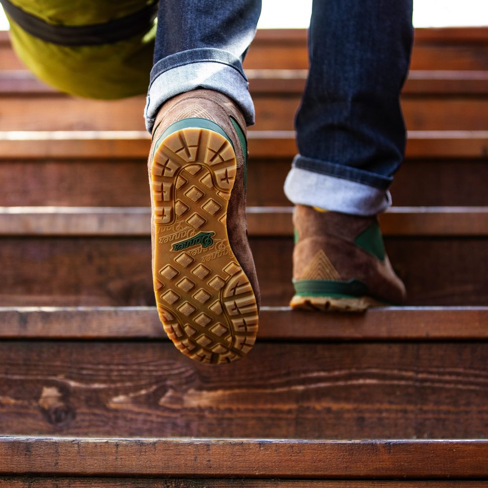 - Durable, aesthetically pleasing construction: An almost royal-looking green nylon graces the tongue and the upper, while the sides and toe are finished with tough, chocolatey leather. This construction passes test number one for buying men’s shoes — appraising the materials’ durability.