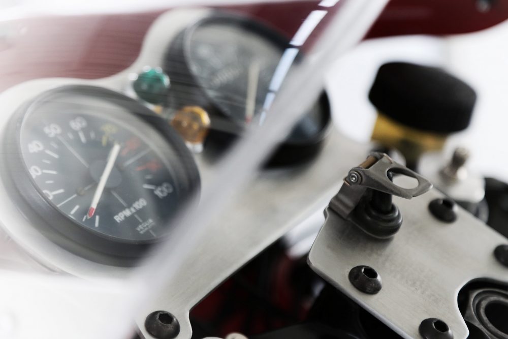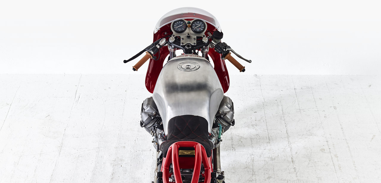 The Moto Guzzi Airtail from Death Machines of London uses the original instrumentation which has been painstakingly restored by their skilled engineers and boasts a bespoke dash which incorporates 1940 Merlin Spitfire aviation warning lights and main switch for a mighty impressive aesthetic impact.