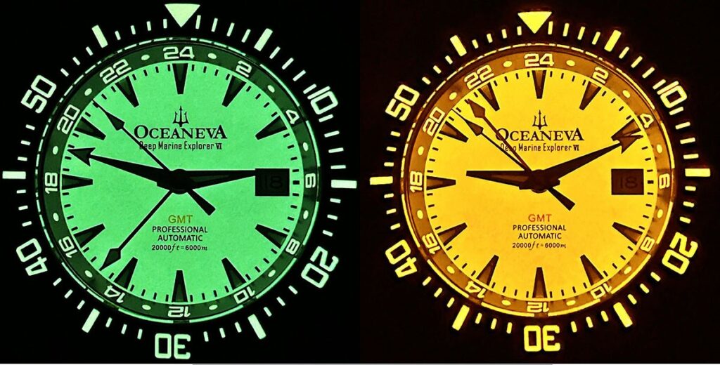 But where this model truly breaks new ground is in its dual functionality. Typically, you have to choose between a diver and a GMT. Oceaneva asked, “Why not both?” For the first time, a uni-directional ceramic dive bezel—essential for tracking elapsed time underwater—is seamlessly paired with a “True GMT” function.