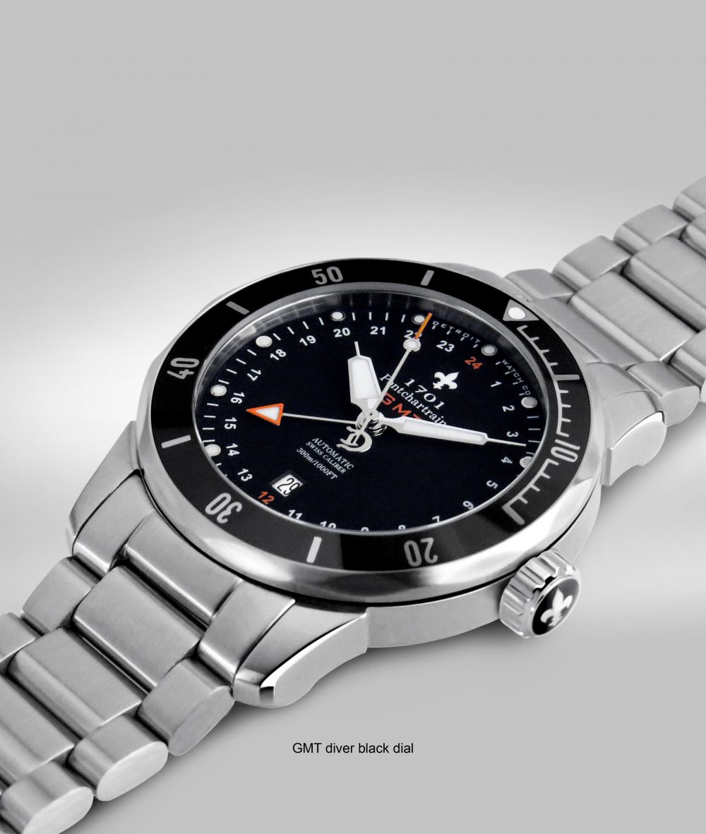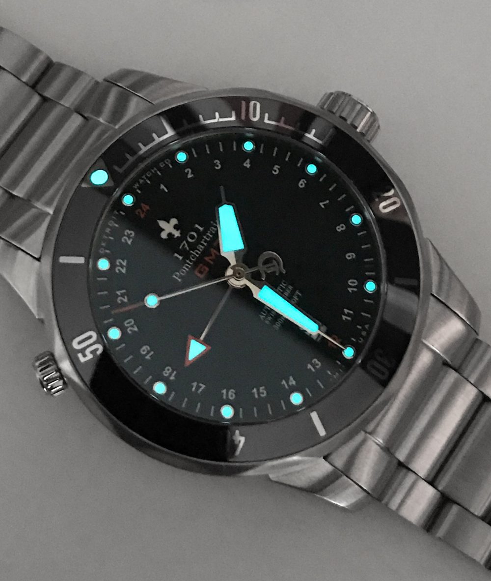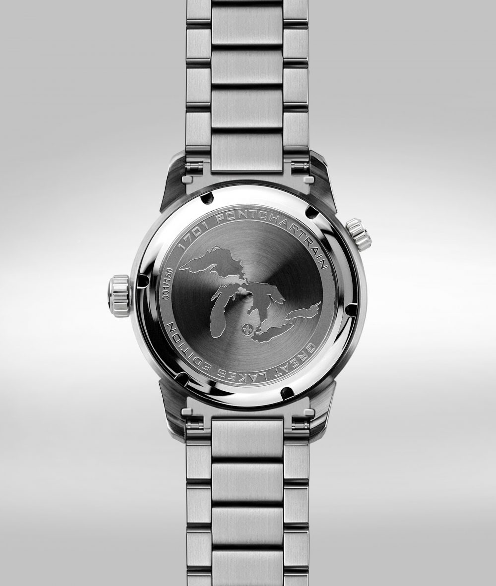 It has Arabic numerals and a stainless steel link bracelet with extendable deployant clasp that makes it easy to remove. The Detroit Watch Company 1701 Pontchartrain® Great Lakes Edition GMT Diver is a limited edition timepiece and each one is individual numbered 1-150 so if you get your hands on one of these spectacular timepieces, it will be entirely unique to you and will be the sort of watch that you pass from one generation to the next.
