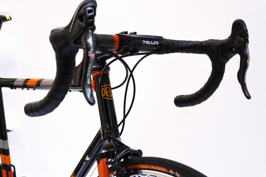 This amazing looking Deus Customs Classic Retro Bike can be built with a vintage groupset and racing vintage race or with a modern groupset for an outstanding homage to the Italian Deus’ workshop’s road racing heritage. For this exceptional build they chose a Campagnolo Centaur groupset in silver as was prevalent in the cycling industry in the past and again a Campagnolo Neutron wheelset and these two elements combine to make this one top performing race bike.