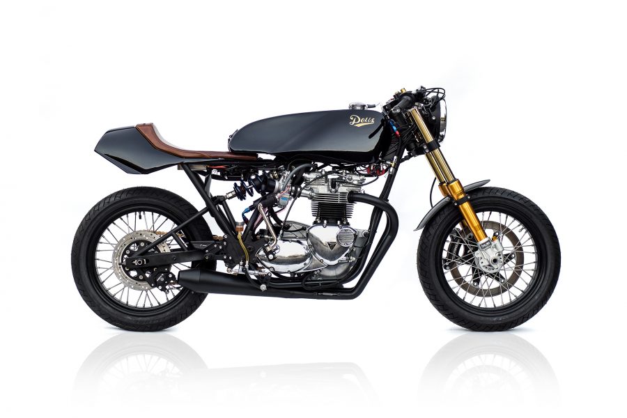 A distinctly sophisticated looking machine, the Deus Ex Machina TTT Motorbike has a motor that is a ported and polished 750cc T140 that ensures the impeccable performance of this glorious looking machine. You’ll also find Megacycle cams and lightened lifters, bevelled and drilled cam gears, chromoly push rods alongside 7mm Kibblewhite hardened valves with contemporary guides and seals which is responsible for the eye-ecatching aesthetic you see before you.
