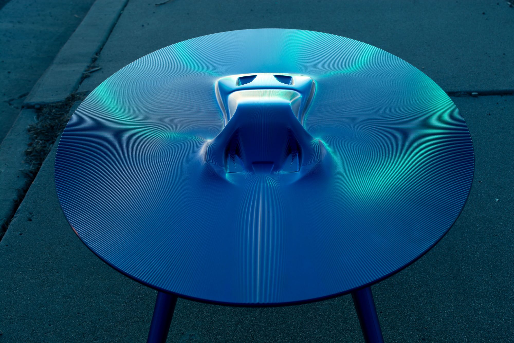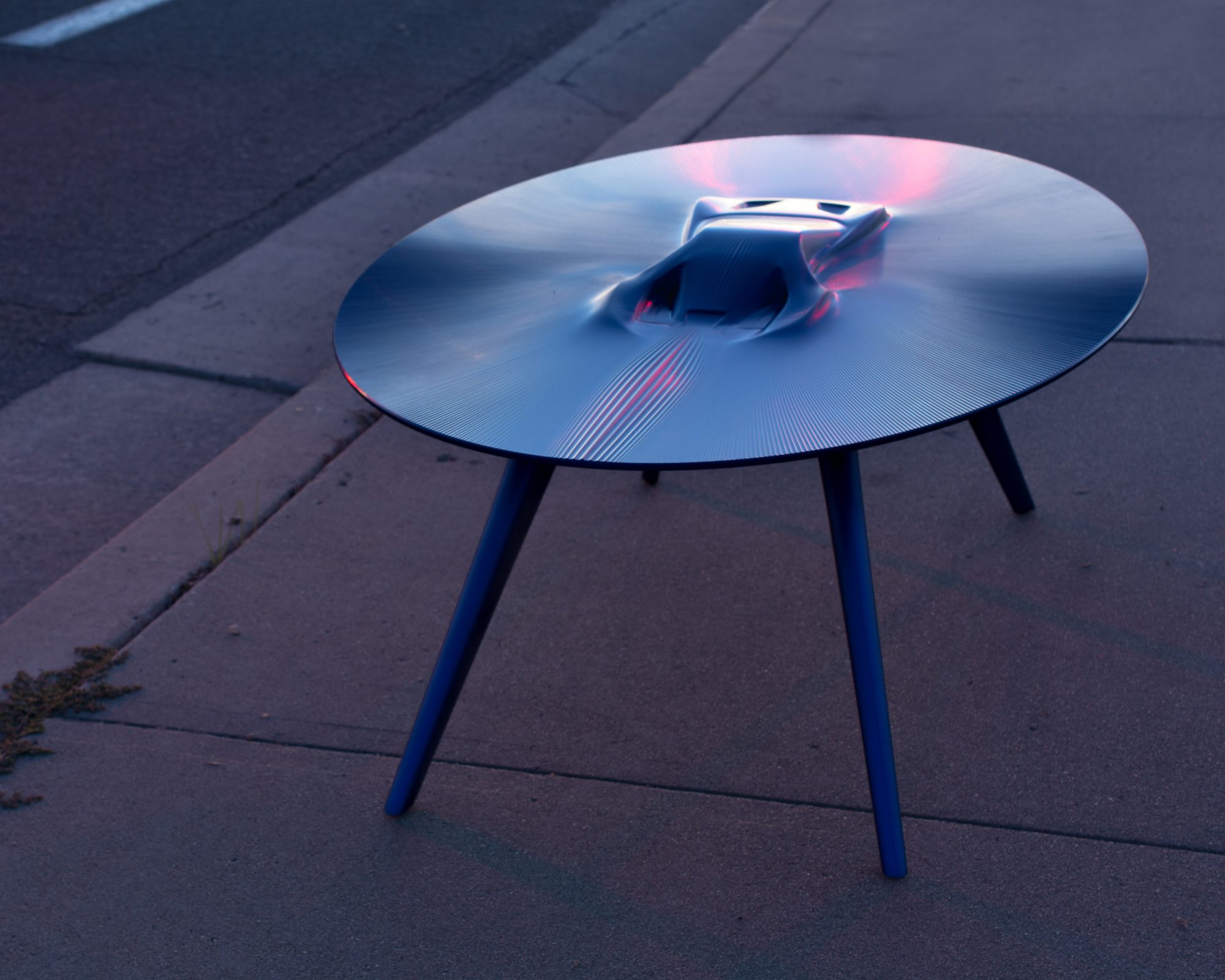 The Discommon Coffee Table stemmed from an original thought of a striking vehicular shape which would emerge from liquid metal. This is a particularly difficult machining process and one that Discommon thought may not even be possible. They’d be removing almost all the material from a 4 foot long, 4 inch thick block of aluminum, and leading just a vehicle hewn into the table surface behind. Fortunately, they did manage to achieve it and the end results are glorious.