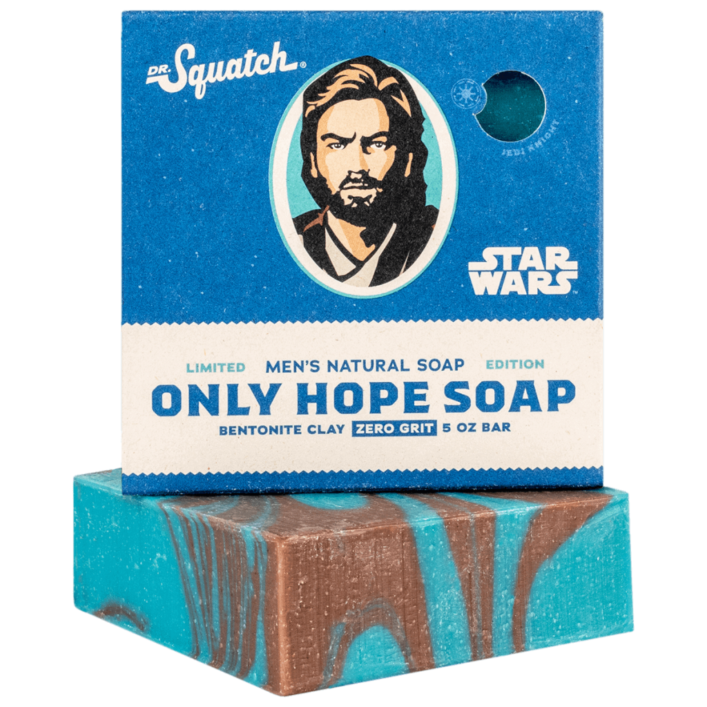 With a swirling blue and brown design, this valiant bar of soap pays a fitting tribute to the one and only Obi-Wan KenobiTM clad in Jedi robes as he wields his blue lightsaber. With a pure, refreshing scent, Only Hope Soap features Thyme Leaf and Bentonite Clay for a soothing and detoxifying rinse that will guide you to truly clean skin.