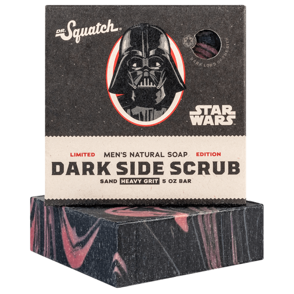 Inspired by the all-powerful Darth VaderTM, this tempting red and black swirl bar of soap from Dr. Squatch will have you in its grip with rejuvenating Chokeberry, exfoliating Sand and detoxifying Coconut Charcoal. The rich and smoky amber scent will fuel your desires.