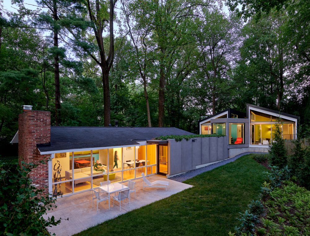 Located in Kensington, USA, the Dual Modern House from KUBE Architects has got a distinctive retro/modern vibe that’s hard to ignore and this renovation and addition to the architect’s own 1950 mid-century modern house, designed by Charles Goodman, consisted of two phases. The existing Goodman structure was renovated 5 years ago, with a new kitchen, bathroom, finishes, windows, mechanical, and electrics. The floor plan was preserved, the kitchen opened up to living space, and bedrooms/bathrooms were renovated to deliver a breathtaking contemporary living space.