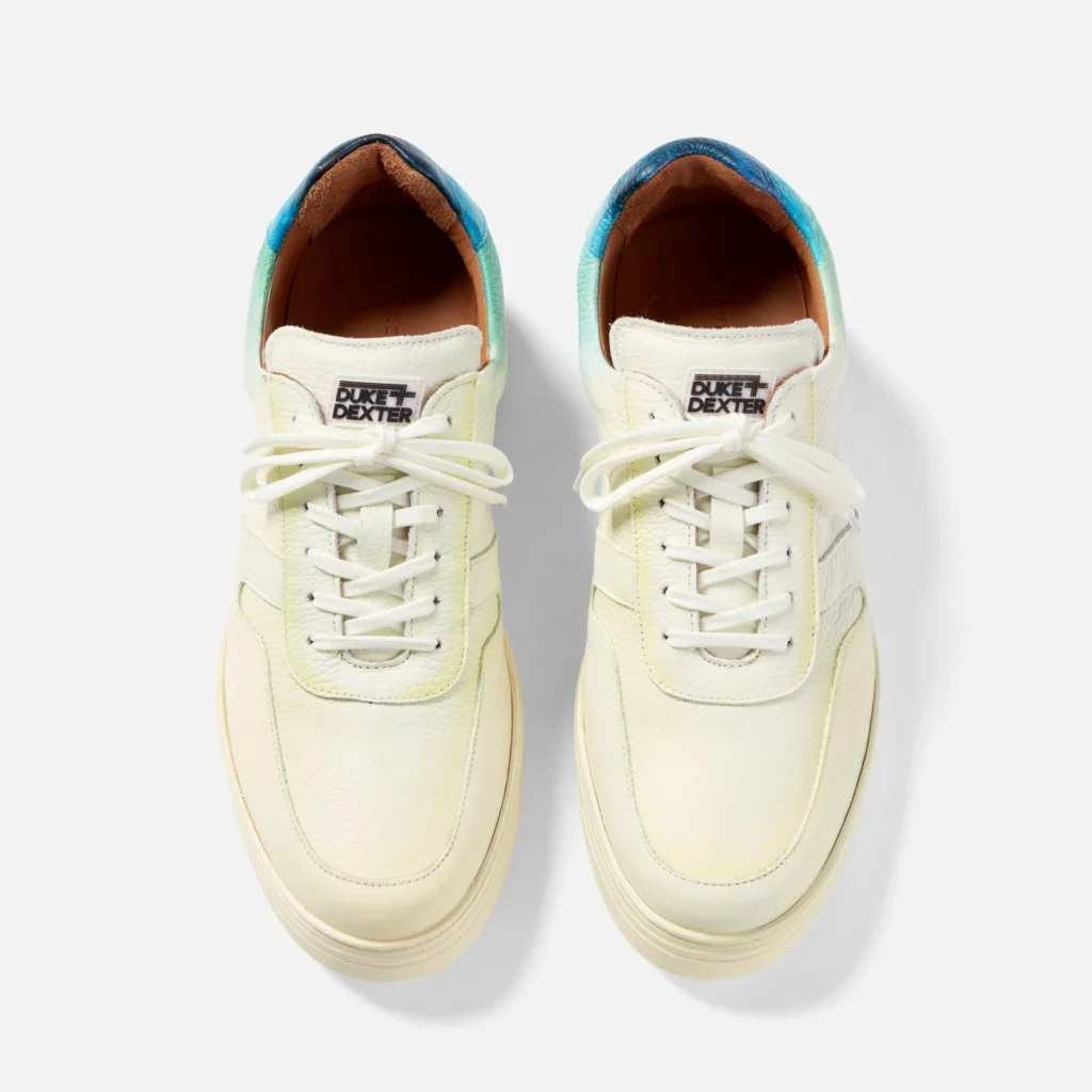 Coated in a shade of egg white and finished off with a visually-vibrant burst of colour to the heel, these custom Rise Sneakers from Duke + Dexter are hand-painted to perfection and sealed to be scratch and water-resistant so they’re good to go wherever your adventures have you headed this summer.