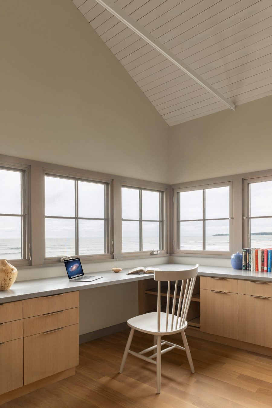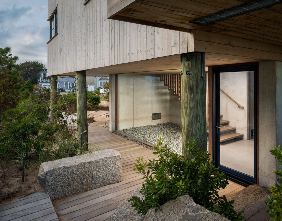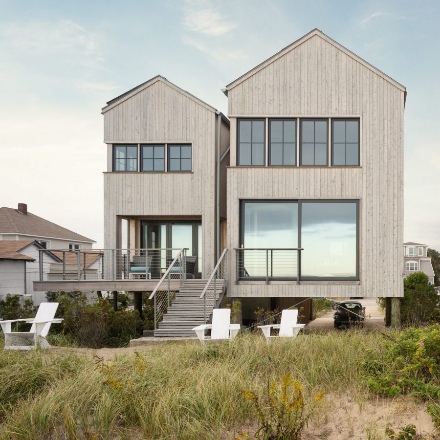 Boasting a highly contemporary design, the In The Dunes House is located between a large, shingle-style property and a much smaller, one-room beach cottage, and the design aims to respect the context of this location. This glorious looking home was influenced by the vernacular coastal structures that can be found throughout the Maine coastline and the building was simplified to pure geometric forms and then manipulated and made more contemporary to take advantage of the out of this world sea and marsh views beyond.