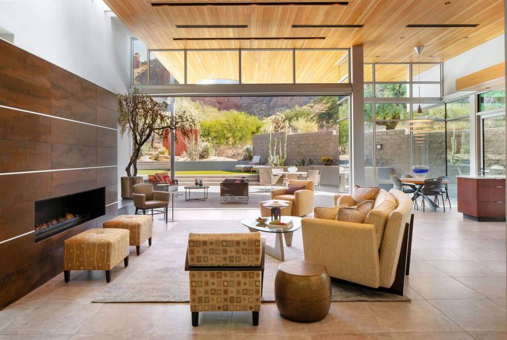 Needless to say, Arizona is known for its incredibly hot temperatures during the summer months but Echo Canyon Residence has been cleverly designed to help the owners keep cool in these hotter months of the year. The architects have incorporated a number of different-sized volumes that have been purposively positioned around outdoor spaces. There is also an array of curved elements that have been implemented to soften the otherwise rectilinear aesthetic of the single-storey dwelling.