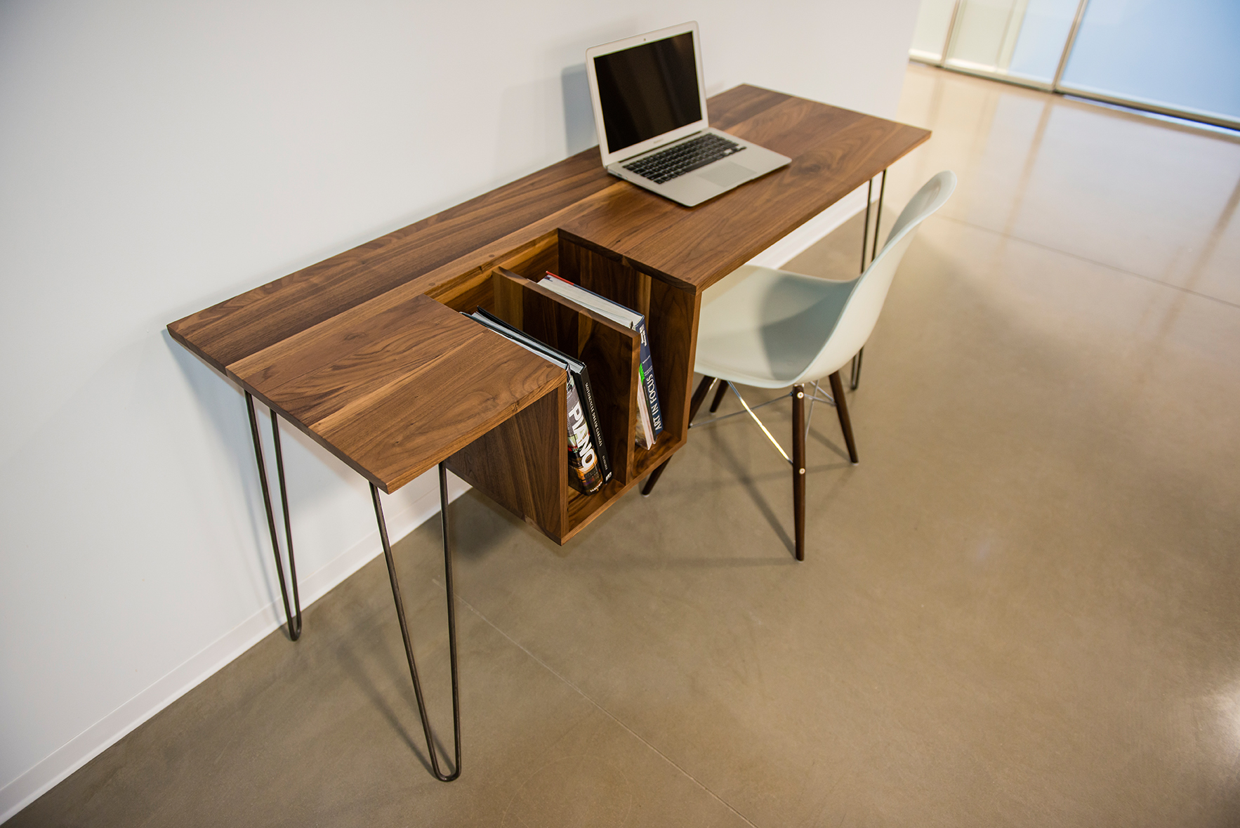 Billed as an elegant twist of the One-Two table with metal hair pin style legs, live edge hardwood and a singular off-center dropped box, the EhoEho One High Desk delivers both aesthetically and in terms of the workspace performance you’ll demand from your choice of desk. This amazing looking piece of designer furniture from American design studio EhoEho is made from great materials and has a clever visual component which also adds to the desk’s overall level of functionality.