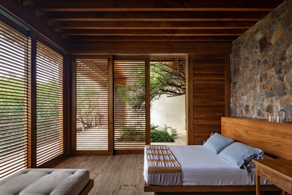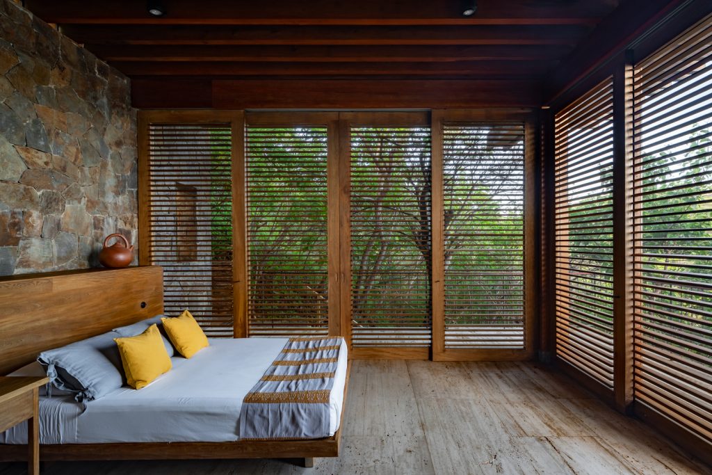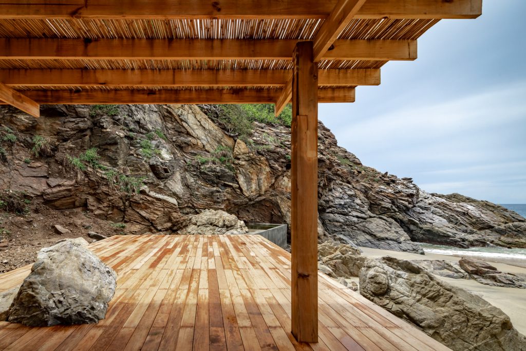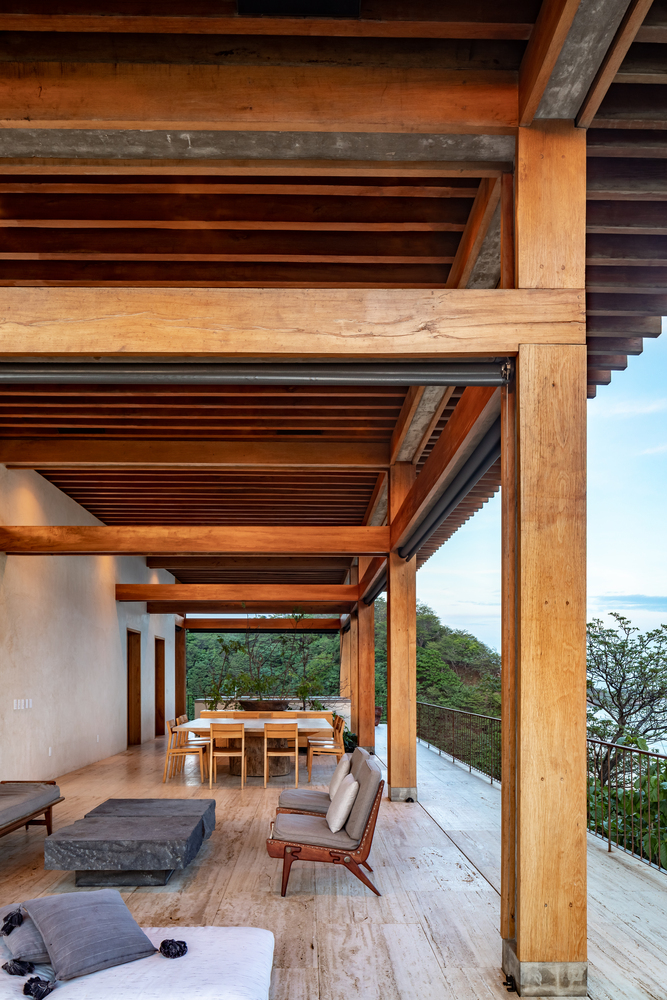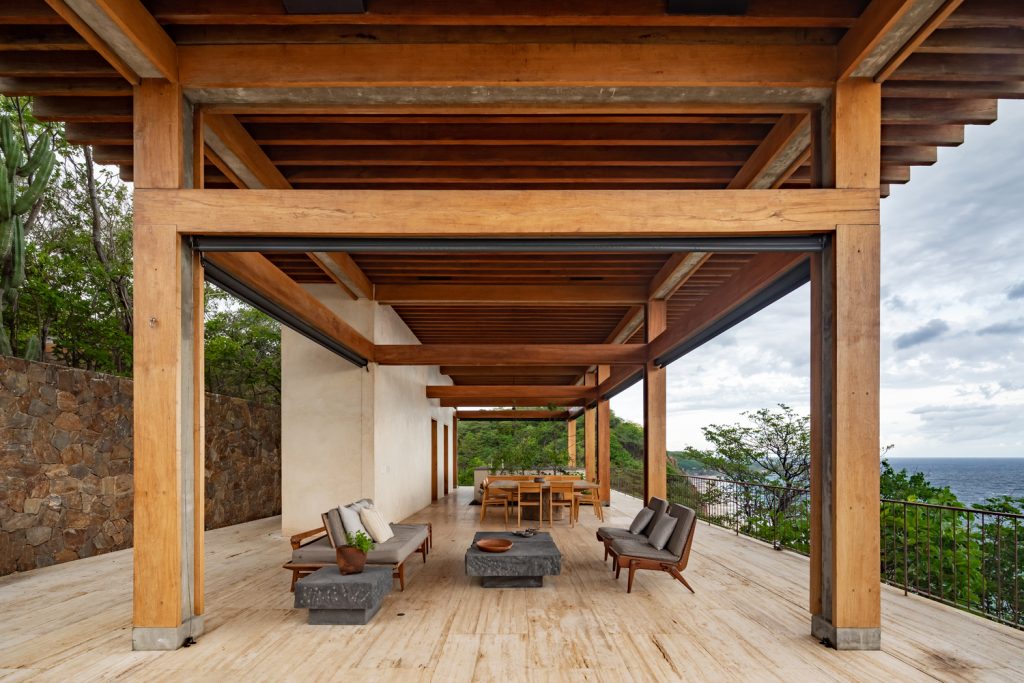 For this thoroughly impressive build the architects imagined living only on terraces or on a coastal palisade. They wanted to “touch” the plot on which El Torón House is built as little as possible and, where it did, that was as understated and respectful as possible. The construction exclusively makes use of local materials; certified tropical wood for the structure, door and window frames, local stone—mostly from the excavation itself—for the foundations and containment walls, and stucco and clay from the local area that need very little upkeep.