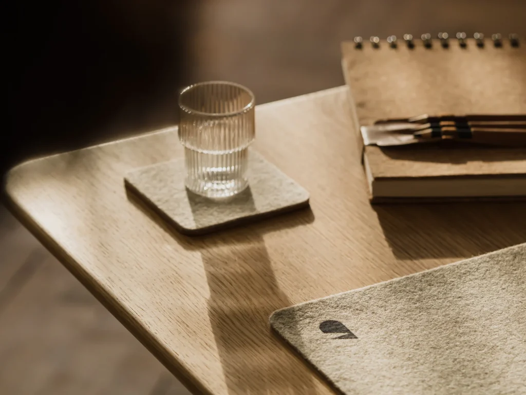 The uniquely milled edges subtly enhance its elegant look, while a special eco oil-wax finish makes the surface pleasant to the touch without blocking the wood’s natural pores. For those who prefer a more streamlined look, a veneered wood option is also available.