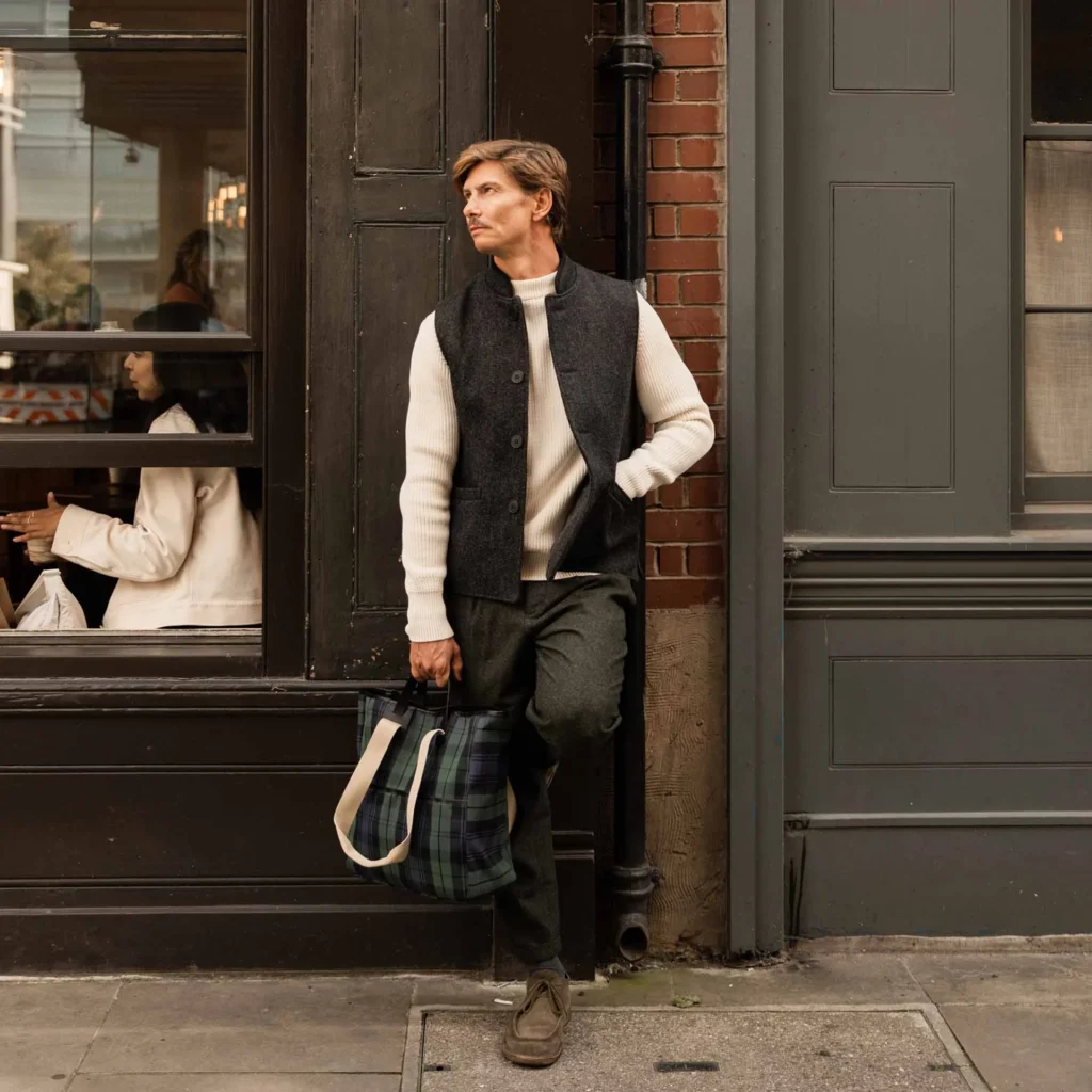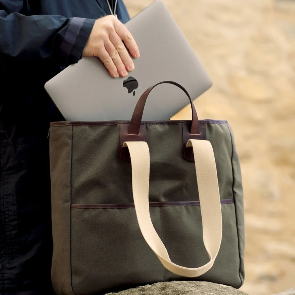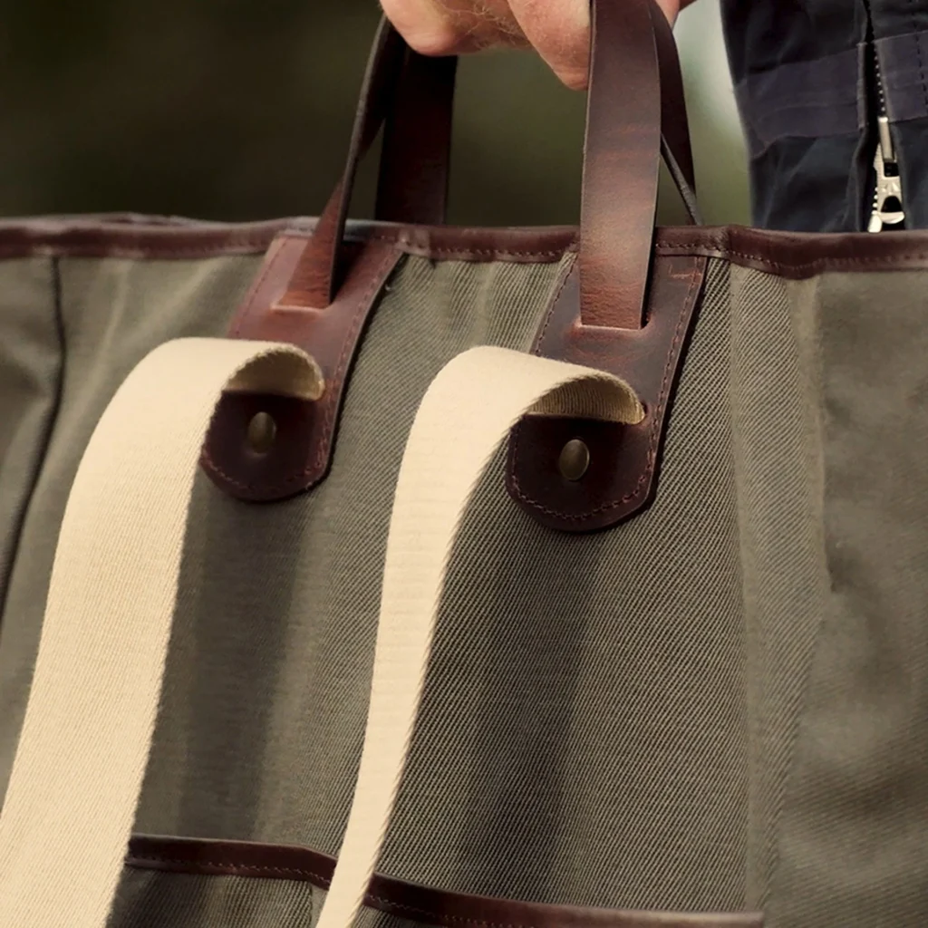 Complementing this robust British fabric are premium vegetable-tanned leather details. These thick leather accents not only reinforce the bag’s structural integrity at key stress points but also inject a heavy dose of undeniable, timeless class into the overall aesthetic.