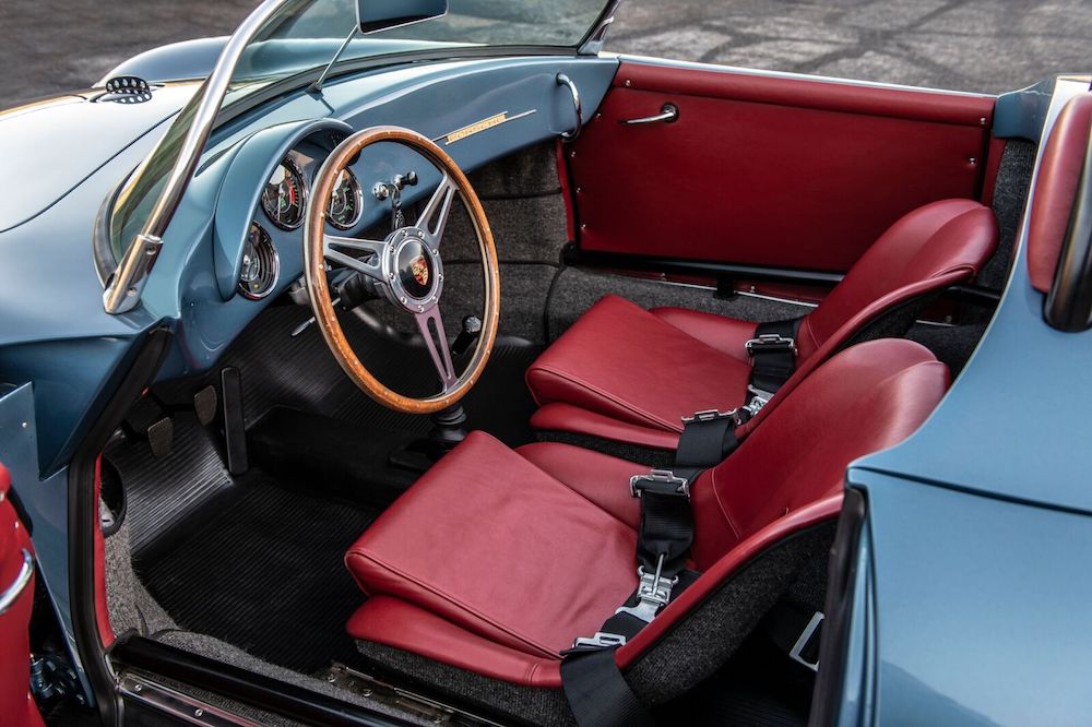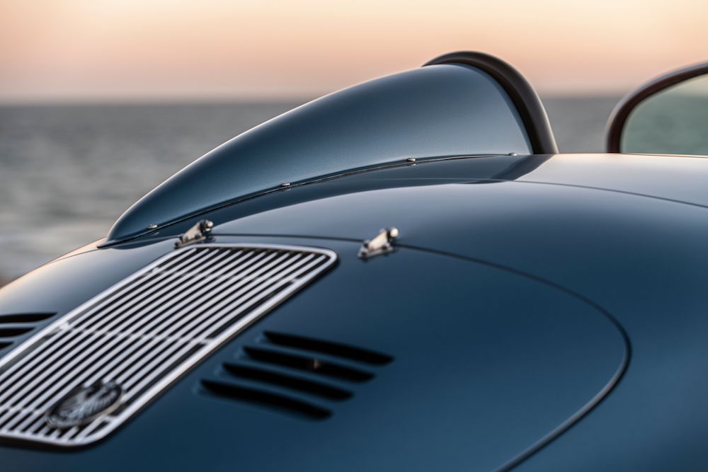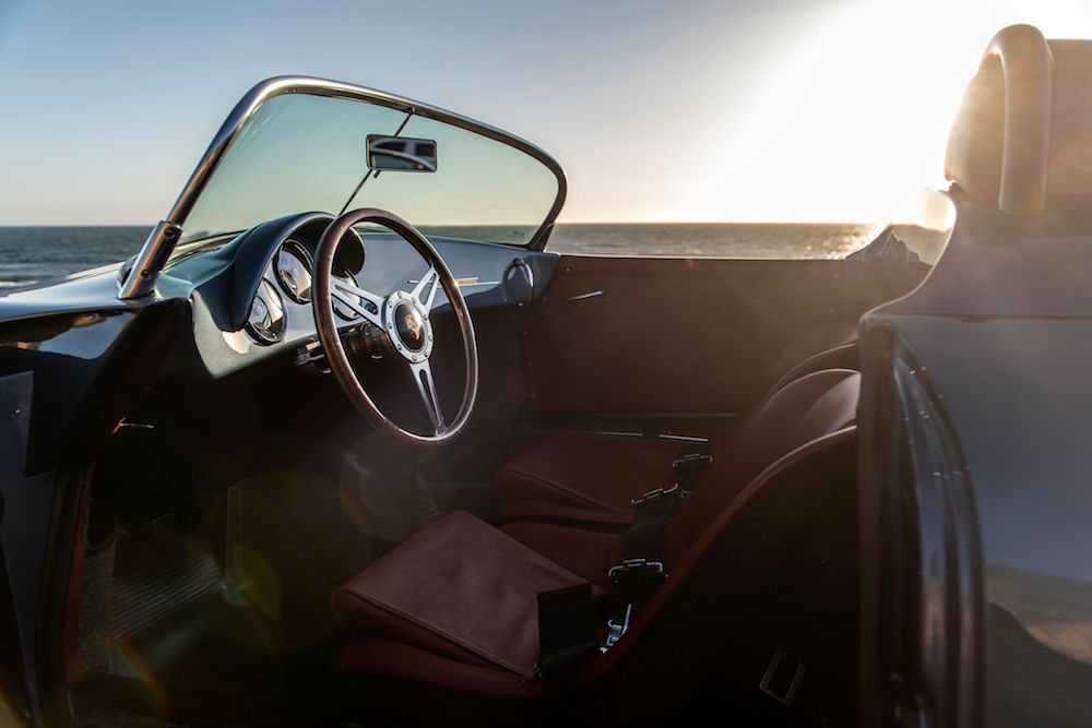 Undoubtedly one of the most jaw dropping machines on the planet, the Speedster aesthetic calls for a pristinely spartan interior which is minimalistic and functional. Charcoal square-weave carpet gives the Hydesred leather upholstery an additional aesthetic impact. Speedster-style seats and dashboard seamlessly combine the old with the new and a 904-style triple gauge with speedo and tach provide a some extra data points to keep the driver informed while on the road.