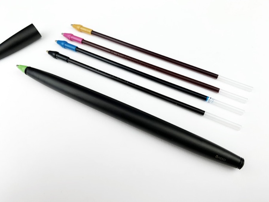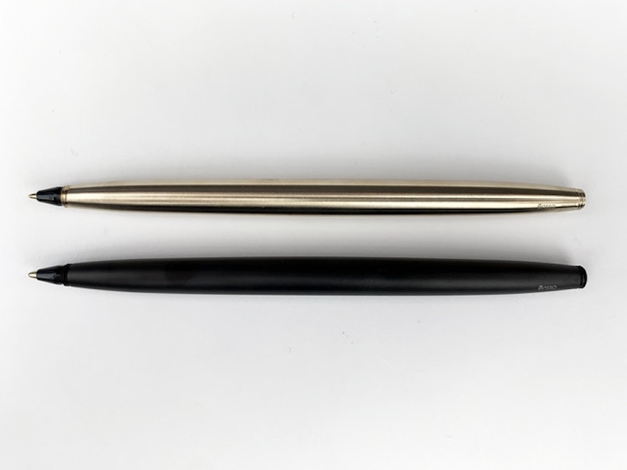 Machined from solid bars of space-grade (6061-T6511) aluminium and natural brass, there is a real tangible sense of quality to these effortlessly cool and sleek looking pens from ēnsso. The lightweight aluminium version is anodised in matte black for an understated and sophisticated aesthetic. Whereas the brass edition is heavier and delivers a more tactile experience to the user. The brass is left uncoated and this means it will develop a unique patina over time. Such patina is appreciated by collectors but can easily be removed with any brass-cleaning product for a new and shiny appearance.