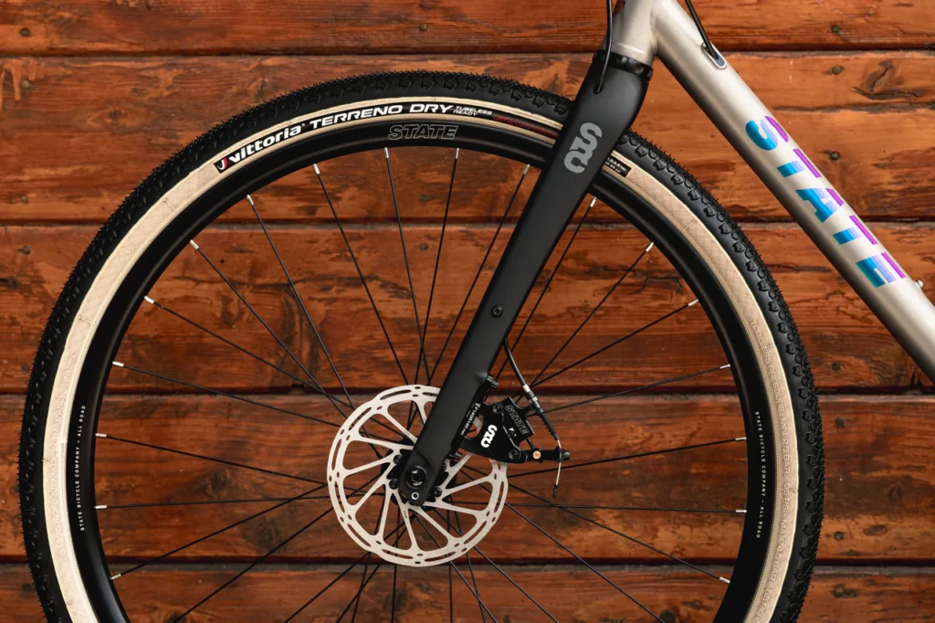 Out of the box, it comes beautifully equipped with a complete array of proprietary State Bicycle Co. components—including their meticulously designed custom cockpit and saddle—and rolls on highly capable Vittoria 47c Terreno Dry Tubeless Tires to guarantee a premium, terrain-eating setup from day one.