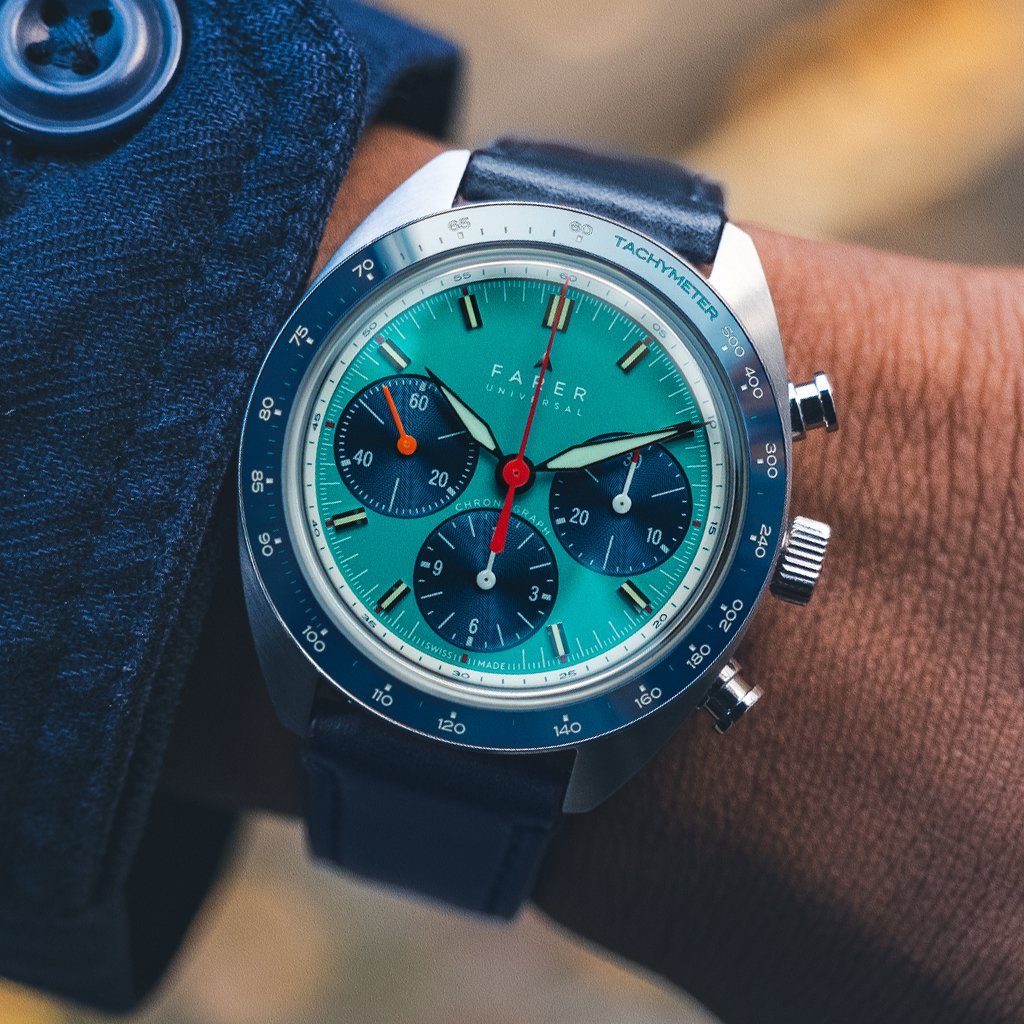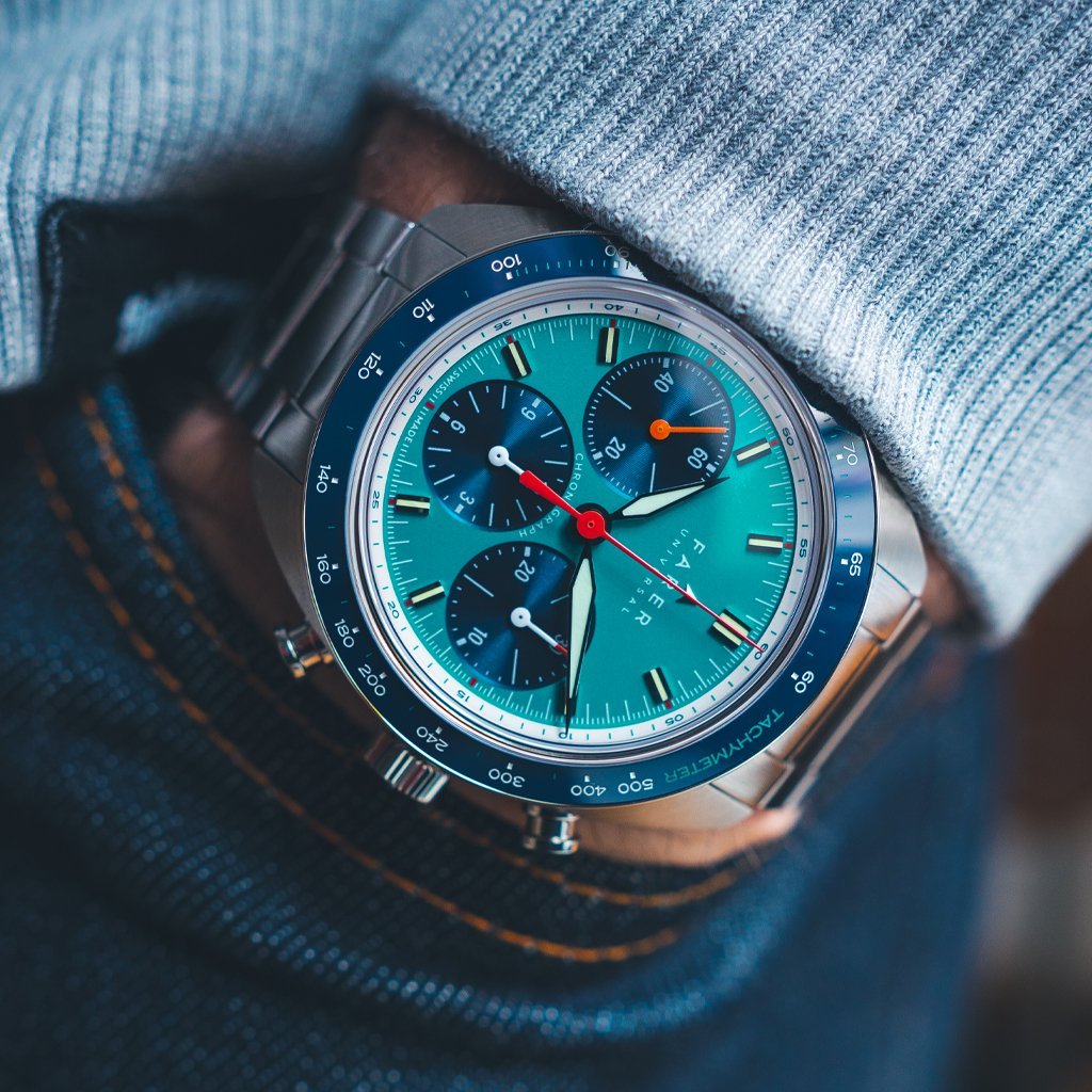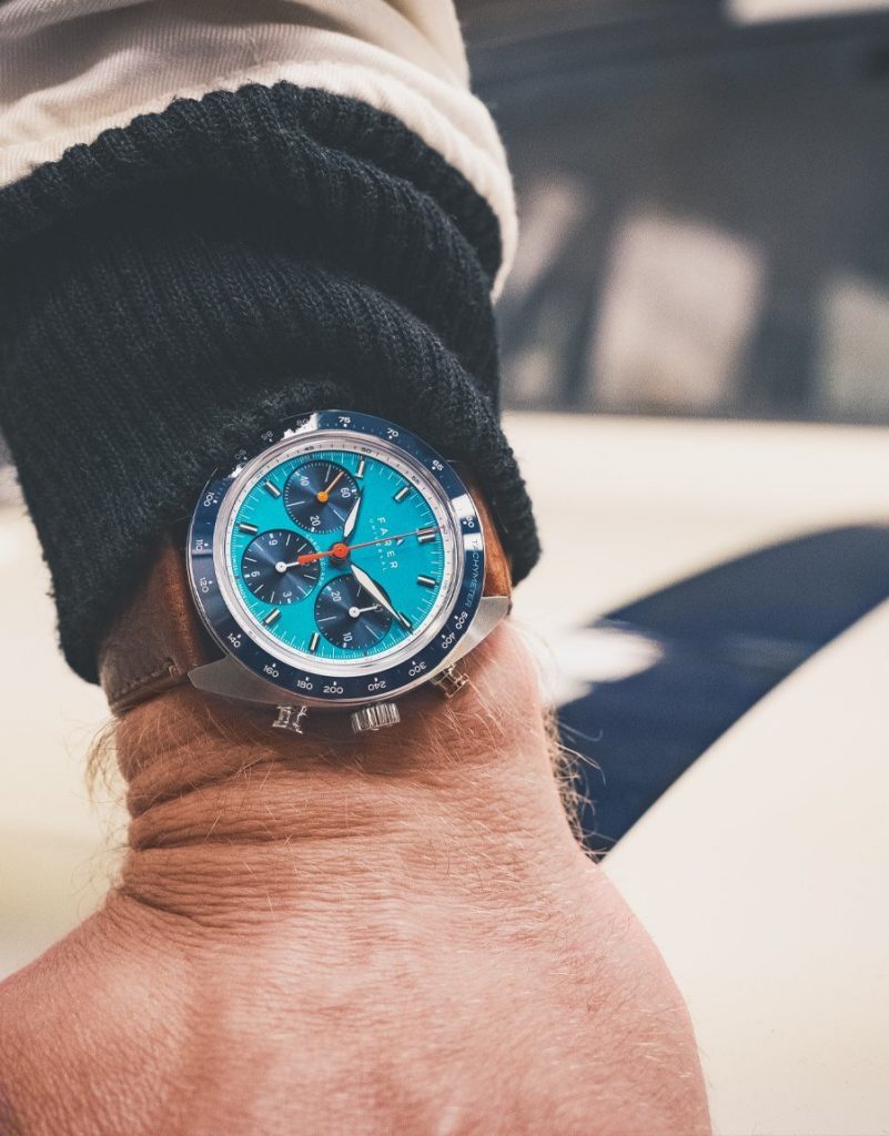 Perfectly priced at £1680, the Farer Carnegie Watch is a timepiece with an undeniably universal appeal. Its retro inspired aesthetic has been reimagined for today horology aficionado and it’s hard not to be wowed by the visuals. Based on the Bernina architecture, and made to stand out in the crowd with a rich matte teal dial punctuated by the recessed triple sub-dial layout in brilliant blue circular sunray finish, this latest release from Farer is already selling out fast so don’t hang around if you want to get your hands on one.