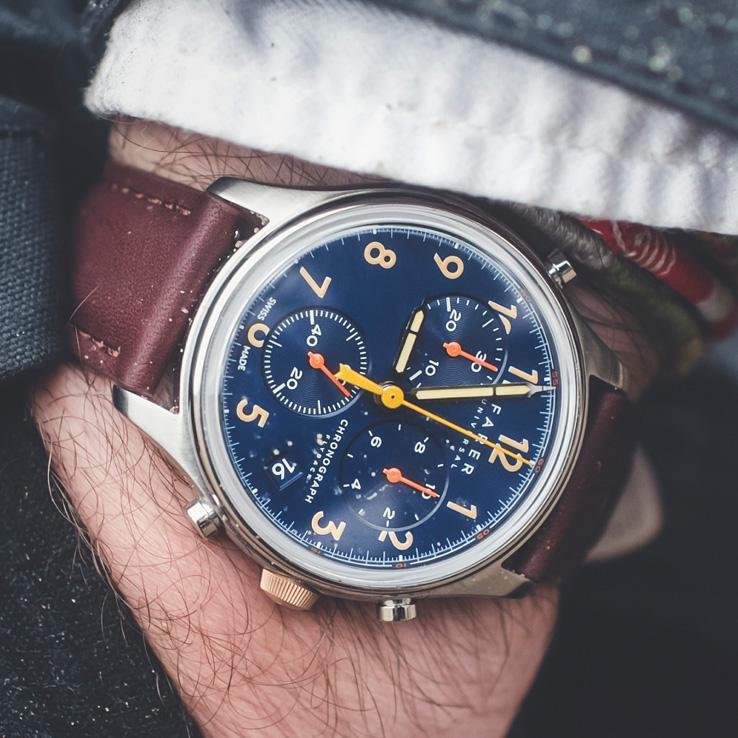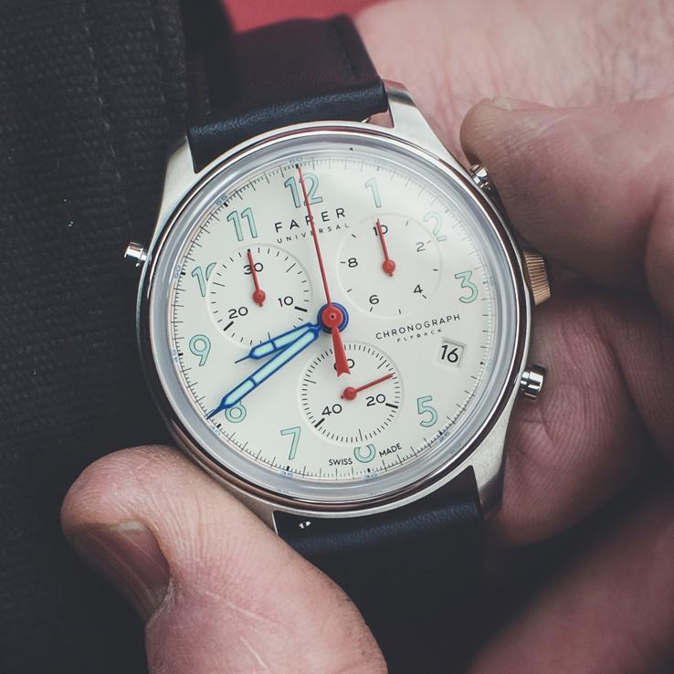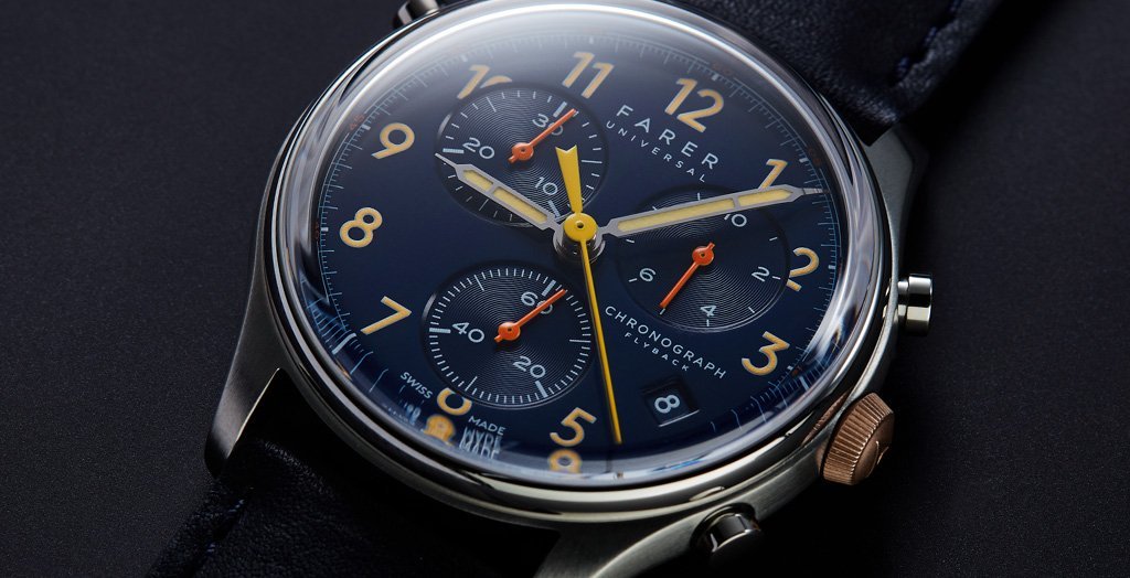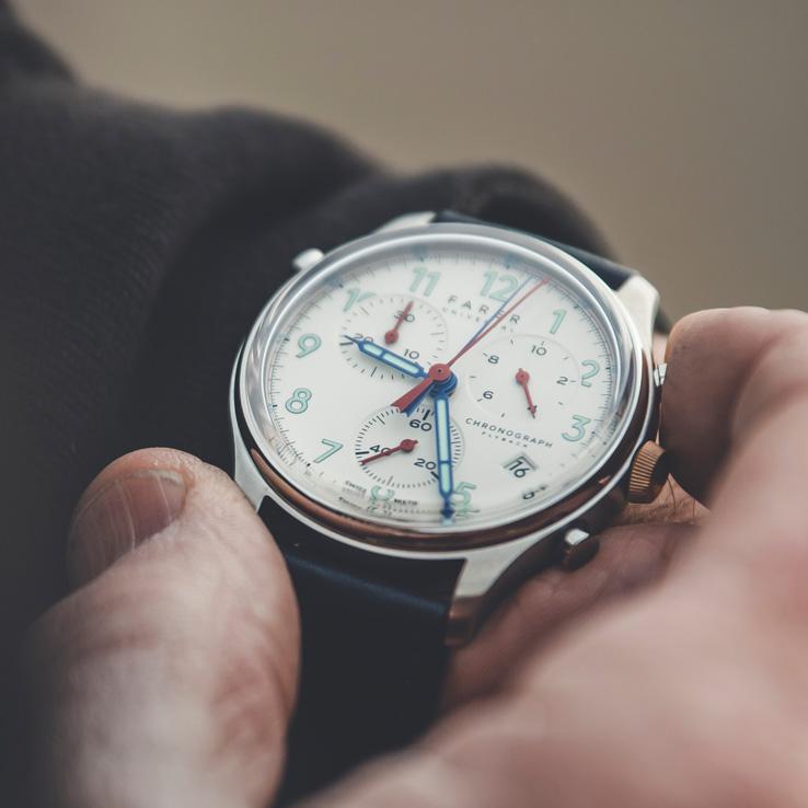 It is the flyback chronograph complication that really makes these timepieces stand out for Farer and this allows you to use the reset function without the need to first stop the chronograph. When the flyback button is pressed, the second hand flies back to zero and instantly starts counting again. This isn’t the case in most regular chronographs where you’ll typically need to stop, reset, and restart the chronograph if you want to quickly time an event after you have started the chronograph. This type of feature is typically synonymous with pilots and motor racing where speed, response and time itself is of the essence.