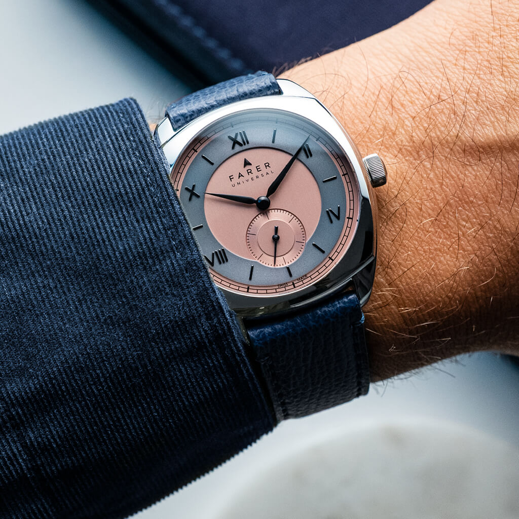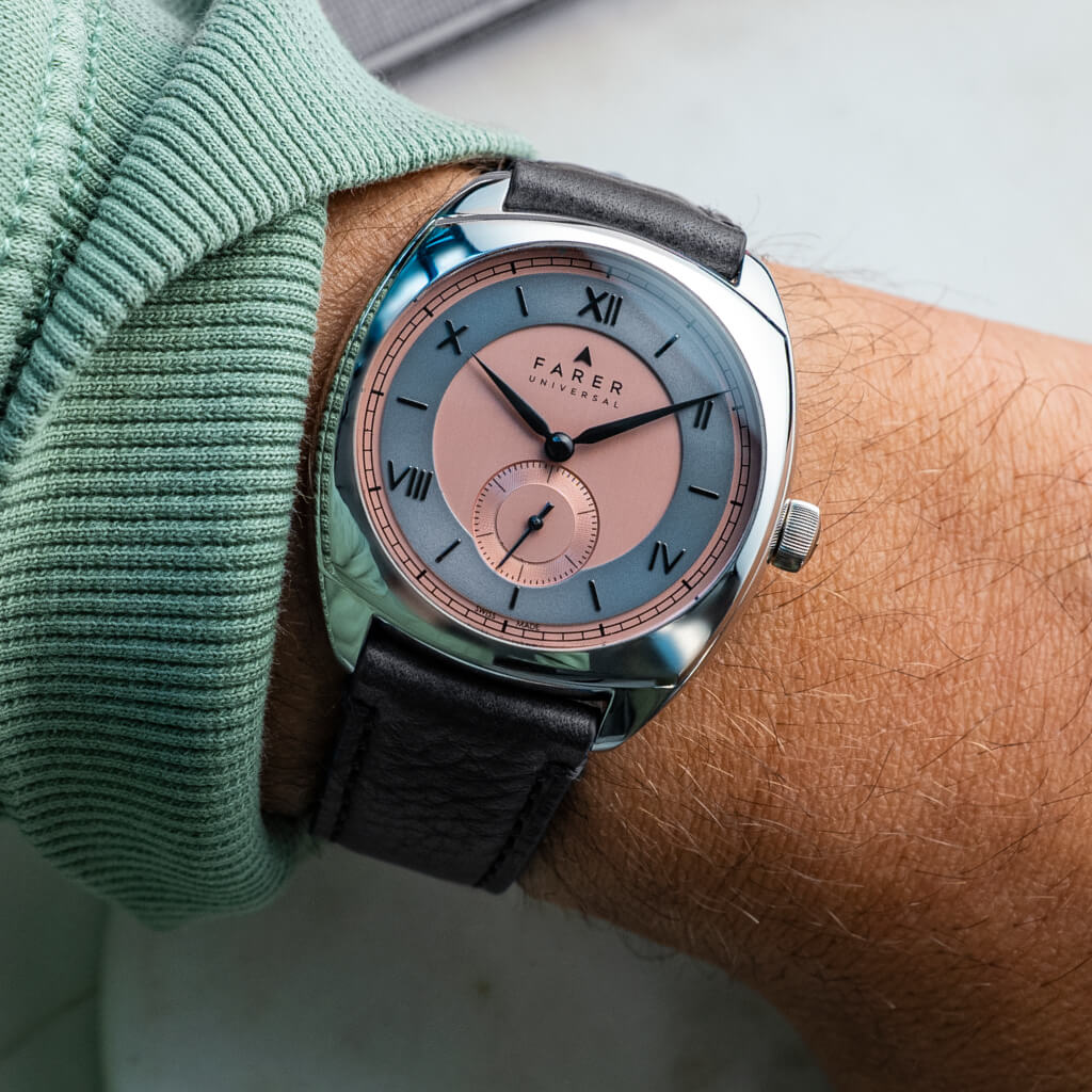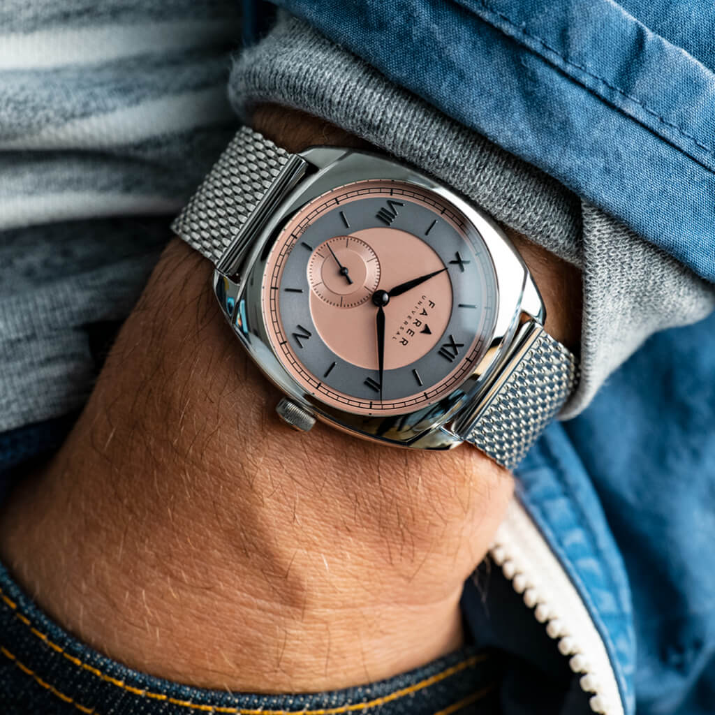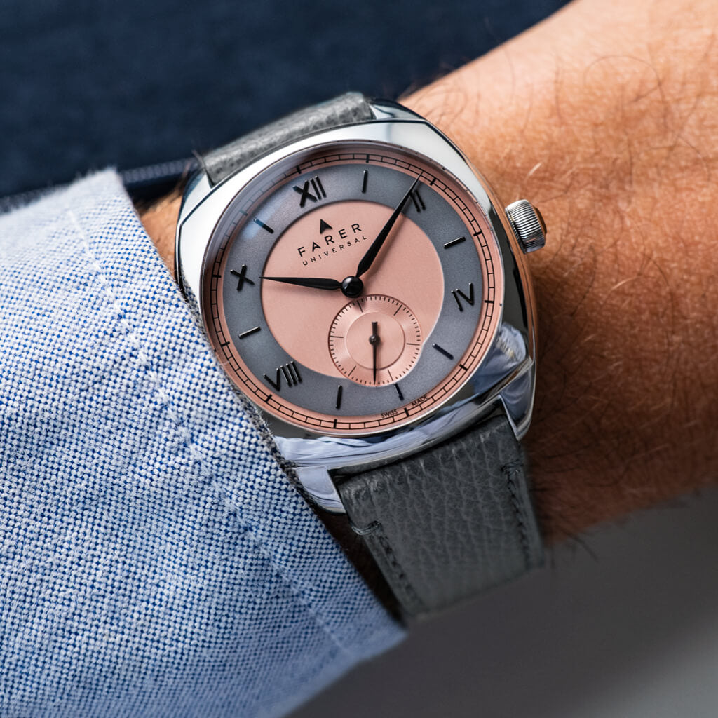 If you like your watches to have a vintage style aesthetic that wouldn’t look out of place on Don Draper’s wrist, the newly released Durham Watch from Farer is sure to be ticking all the right boxes for you. This classy looking offering from British watchmakers, Farer, is finished in rich metallic tones of salmon copper and slate grey. It is is one of three, new designs for 2022 from the cushion case collection. It explores use of tone and texture, to bring a refreshingly different approach to Farer’s conventional dial design.