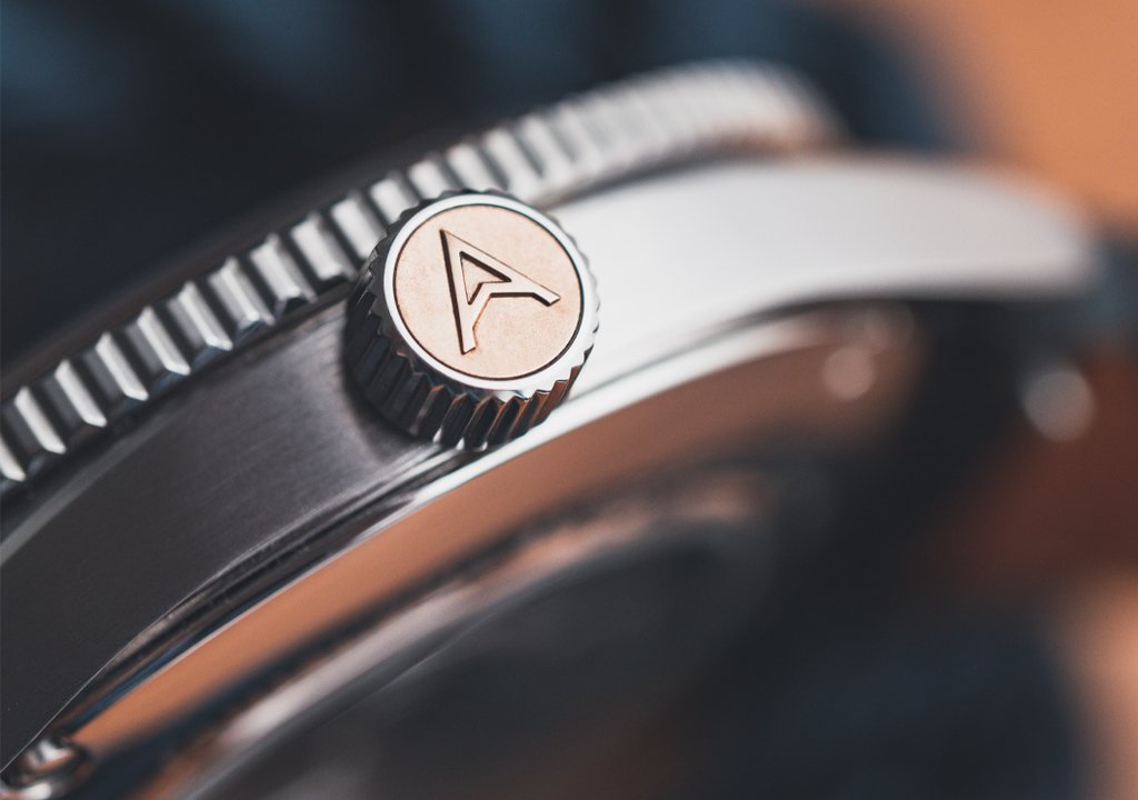 This eye-catching timepiece is crafted from marine-grade 316L stainless steel, circular brushed top with precision ‘light catcher’ highly polished bevel edges, horizontal-brushed sides, set against a polished back. This creates a visually light effect to a durable, no-nonsense case. Individually numbered and measuring a comfortable 40.5mm diameter on the wrist, 44mm lug-to-lug and a slim 11.75mm in height. The case is framed by the external 24 click rotation bi-directional GMT bezel for quick time-zone setting in seconds.