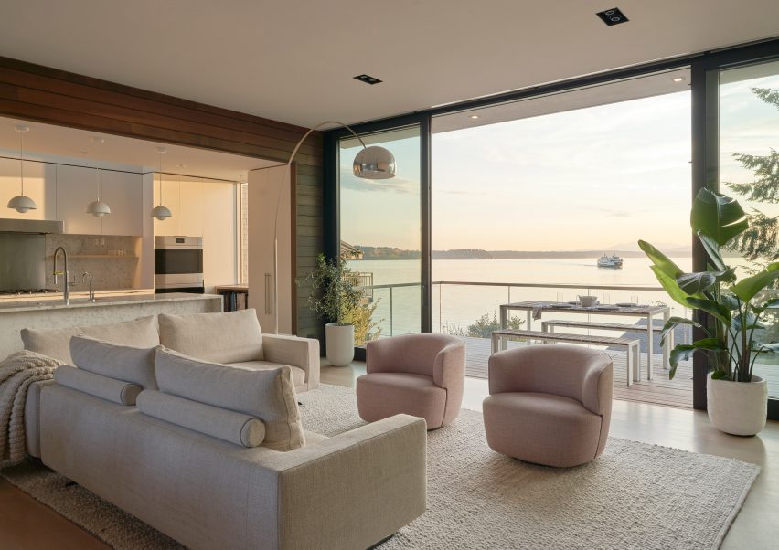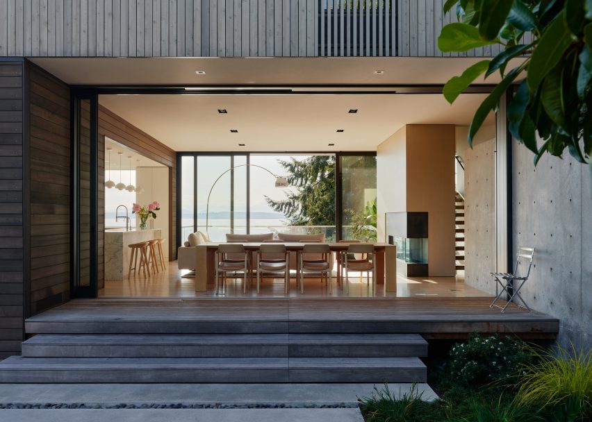 Fauntleroy Residence from Heliotrope is on a waterfront site in Seattle, with westward views of the glorious Puget Sound and Olympic Mountains – so the views are pretty much on point. A ferry terminal is just a short distance away for when the owners want to head on some water based adventures. Totalling 3,978 square feet (370 square metres) of living space, the three-storey home was designed for a husband and wife with two children.