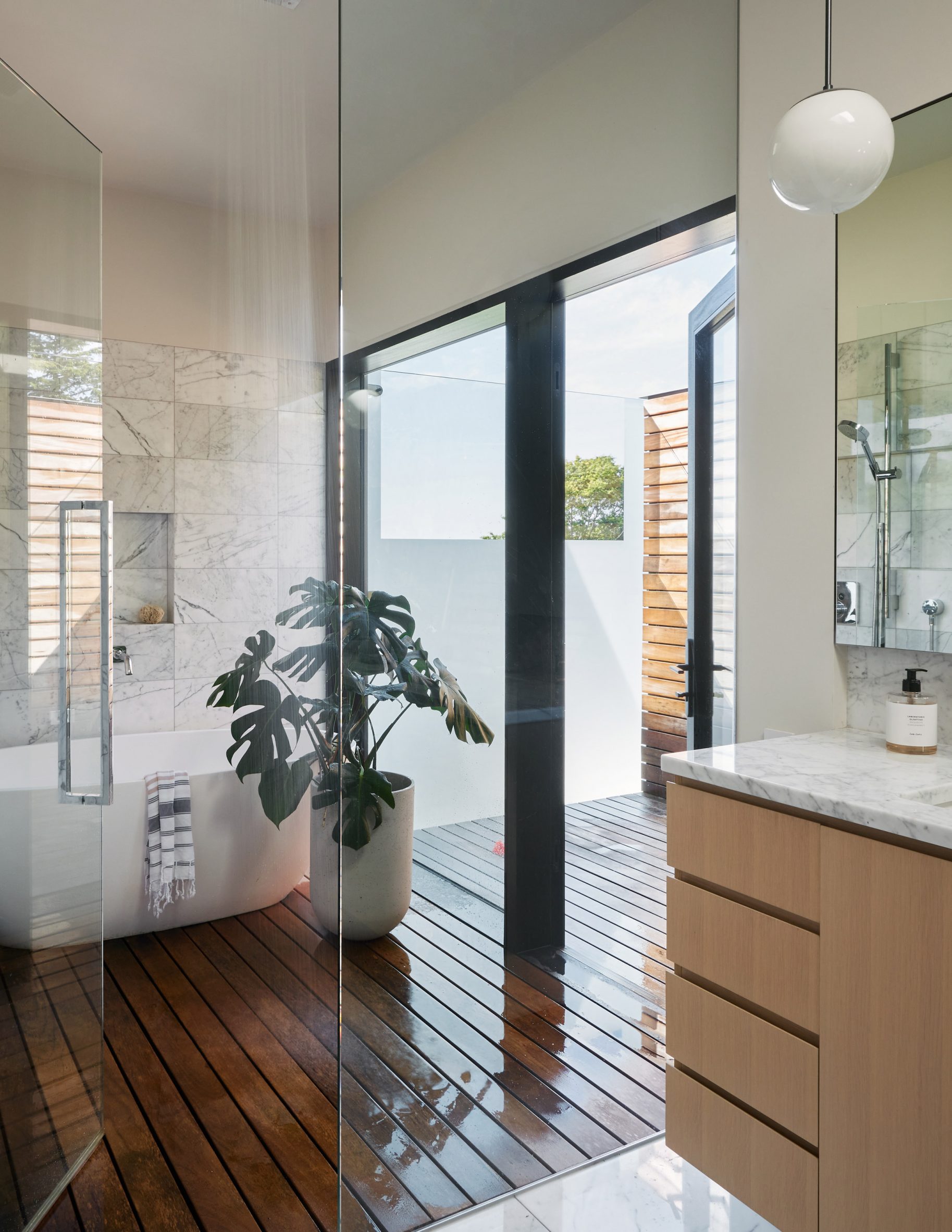 The site is trapezoidal in shape, with a “panhandle” that juts out toward the beach. The west side of Fauntleroy Residence faces the sea, while the eastern side is positioned along an bustling street. The overriding objective of this exceptional build was to create a home that would allow the owners to step away from the busy world of work and school to family connections and, from what we can see, it is mission well and truly accomplished.