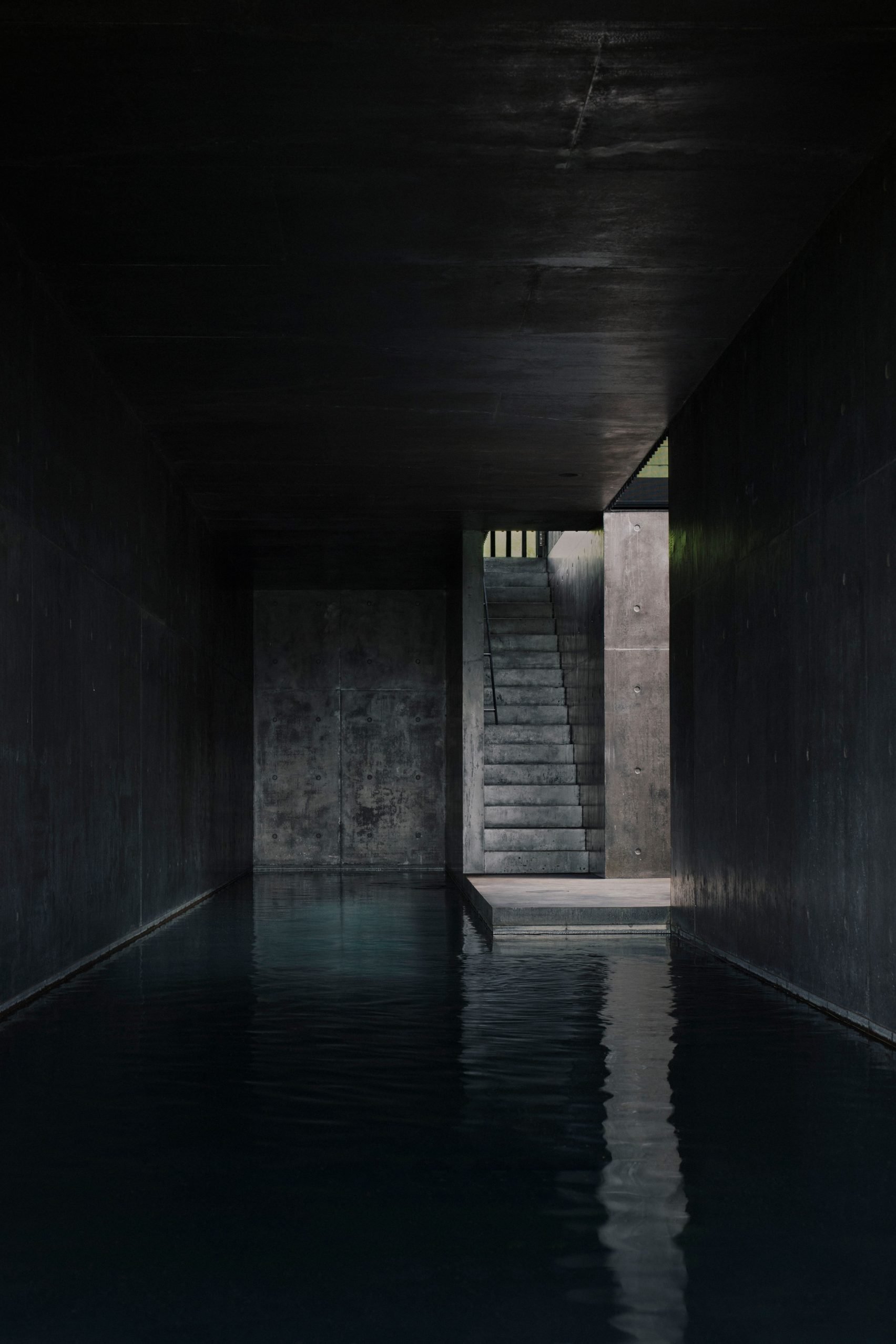 On the lower level of Federal House you’ll discover a thin swimming pool that is open to the landscape at one end. This pool helps to cool the air as it travels through the building, up the garden void and, from there, into the home’s vast living spaces. This natural ventilation is enhanced with a ceiling fan for the hotter days of the year and a fireplace that can be lit in the winter.