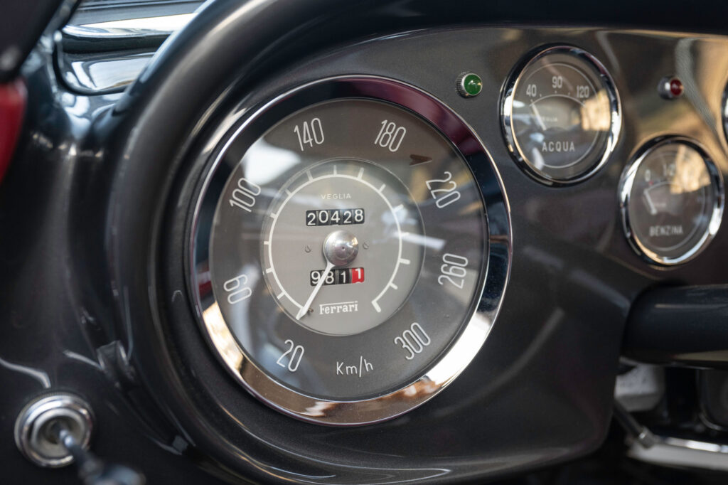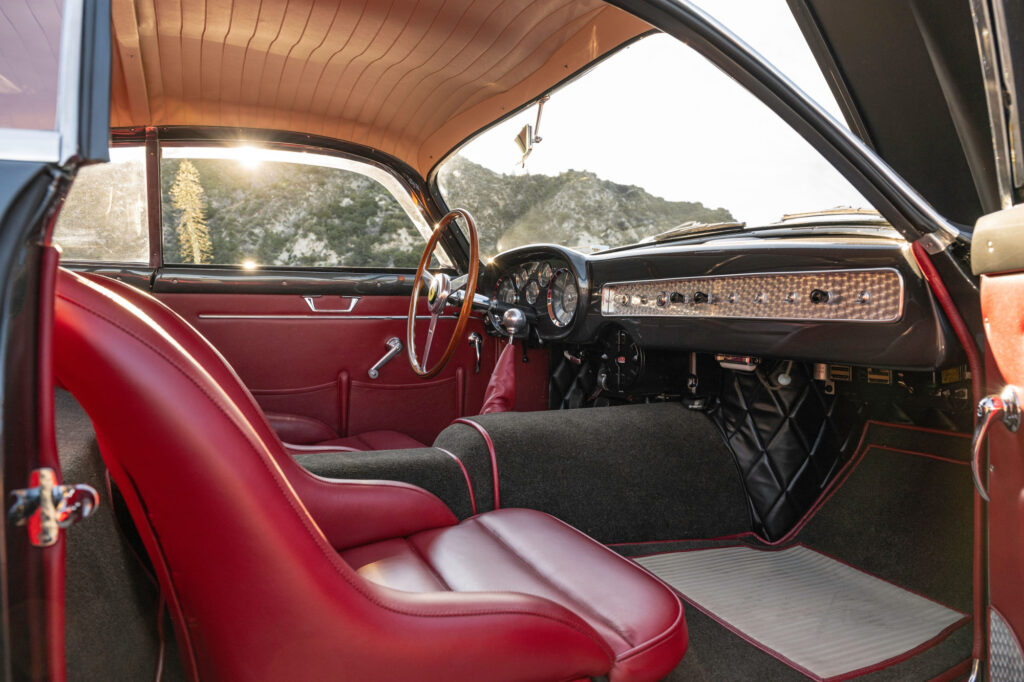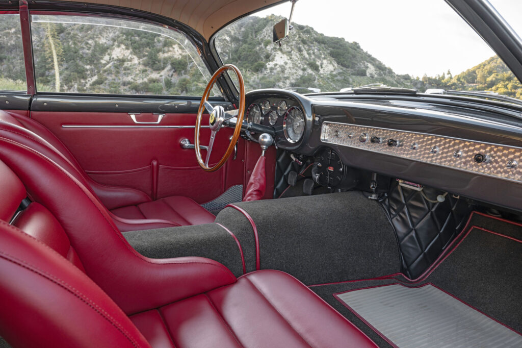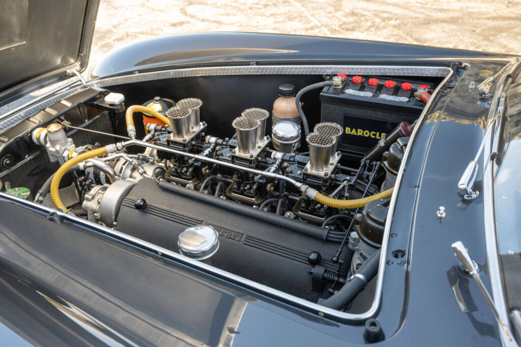 Chassis 0665 GT was the third of five Zagato-bodied Ferraris, and the final one to boast the firm’s iconic double-bubble roofline. It was also a more elegant and sophisticated design than the earlier cars, with covered headlamps, a narrowed grille, a softened rear end, and other minor changes. While the design was influenced by the earlier cars, Zagato no doubt also benefited from the input of its first owner, Camillo Luglio, who had also commissioned chassis 0537 GT a year earlier.