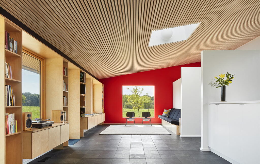 Located in Stillwater – which is a historic town located along the St Croix River, just beyond Minneapolis, Fifty Acre Wood House is nestled on a fifty-acre (20-hectare) parcel, the majority of which the clients granted to the Minnesota Land Trust for permanent conservation. Found close to a waterfall, the property boasts an oak forest and farm fields that are being reseeded with native grasses. The area is also home to a range of wildlife, that includes black bears, foxes, sandhill cranes and blue herons.
