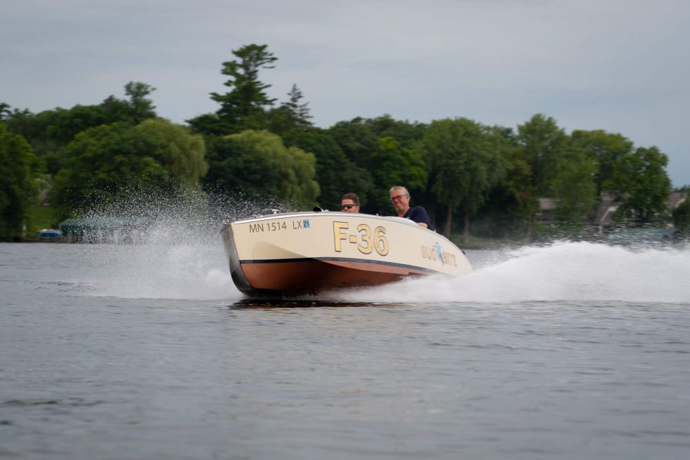 The Fitzke BugBite Wooden Boat has been designed for both the 135 cu.in. and the 225 cu.in. race classes, dependent on what motor would be installed. It is unknown how many versions of this boat were ever built over the years but it’s safe to say that less than a handful are known to exist today. This Fitzke BugBite is built using nothing but the best in modern technologies for adhesives, cold-moulding, two part urethane paints/primers and two part urethane varnishes. Only hand selected Lloyds Registered marine grade mahogany and first class white oak have been chosen for frame components and planking and this gives it a visual impact like no other.