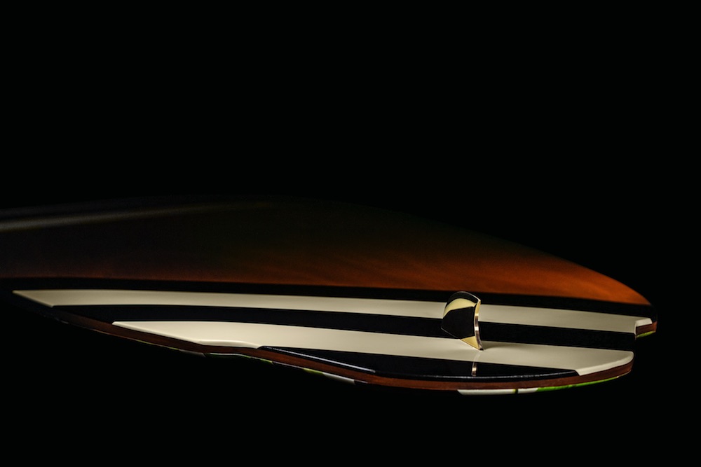 As with each and every wake surf board that emerges from handcrafted Fitzke assembly line, layers of Lloyd’s Register marine-grade mahogany and carbon fiber are vacuum pressed together with epoxy to deliver the signature core structure before decking with stain and graphics. These great looking Sidecar Wake Surf Boards from Fitzke are available in vintage looks as well as botanical styles that are a nod to lumber which has been sourced from the Philippines. After high-gloss marine-grade varnish is applied, the finishing touch is achieved with a handmade, polished brass tracking fin that draws the eye and adds a touch of class to proceedings.