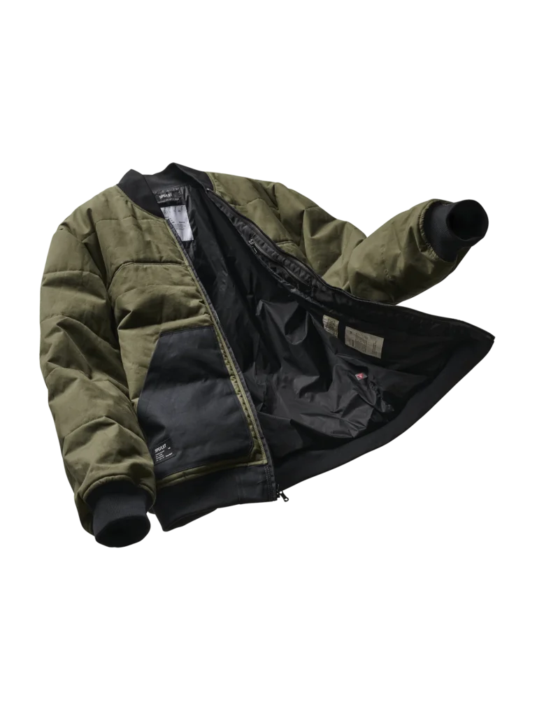 While the original MA-1 was a masterpiece of nylon utility, the Encounter_01J takes that functional DNA and elevates it with a textile that screams heritage: British Millerain® TekWax® Canvas. For those in the know, British Millerain is not just a fabric mill; it is an institution. Since 1880, they have been the undisputed masters of weatherproof textiles, blending historical craftsmanship with modern innovation.