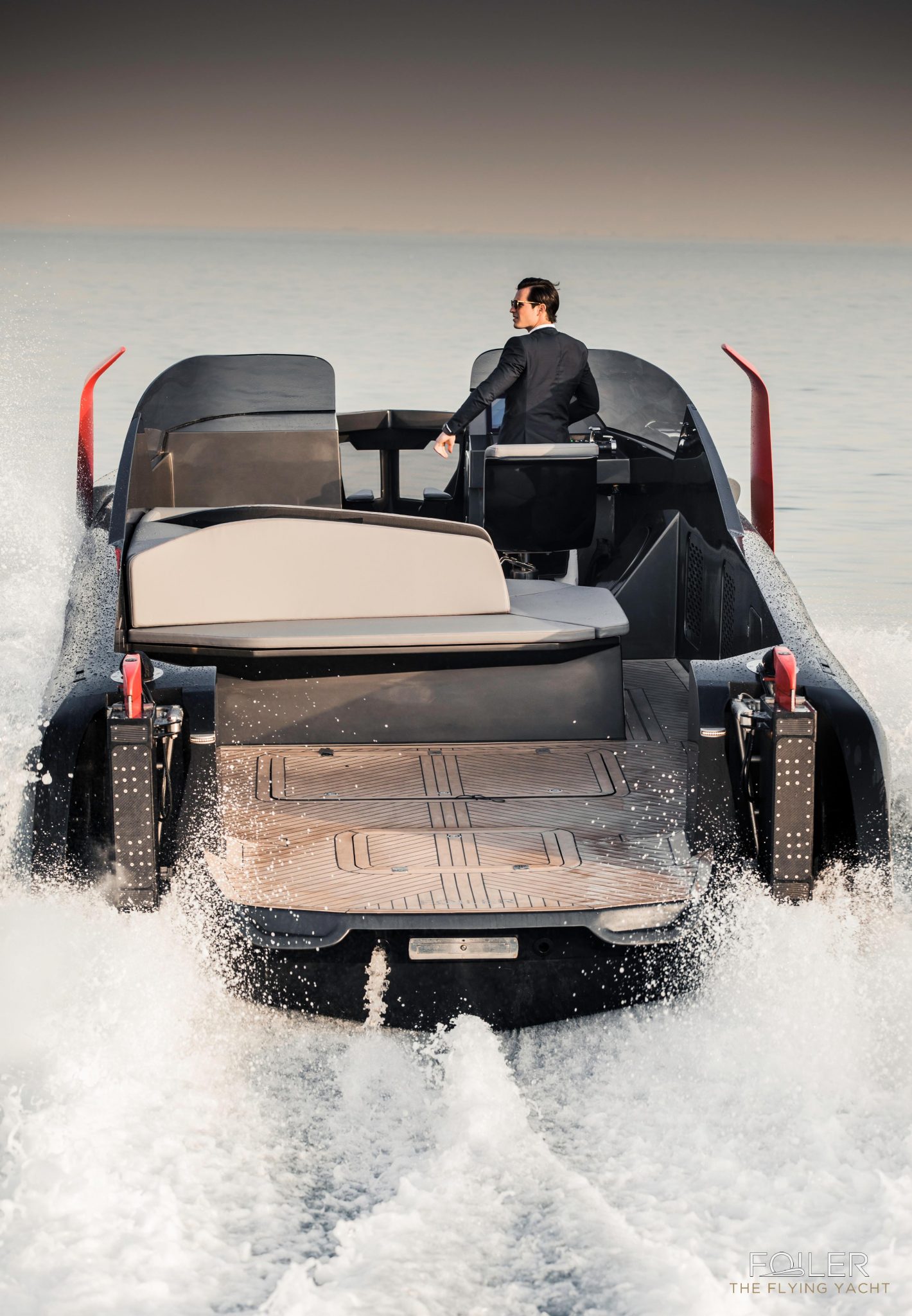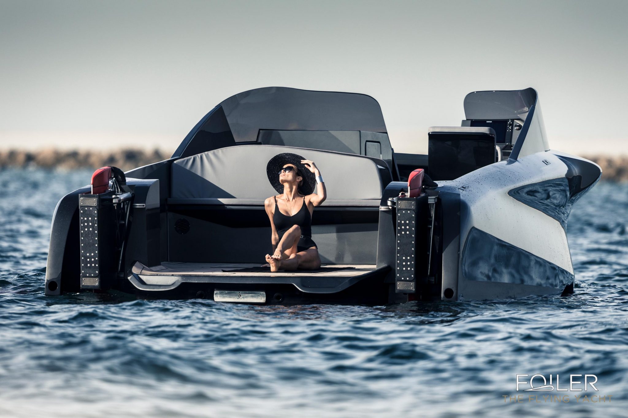 What is immediately apparent about the Foiler is that it’s no ordinary yacht and that’s because it has a hydro-foiling system, which enables this stunning boat to soar 1.5m above the water, delivering an unmatched experience, that puts speed and reactivity front and centre. With a really unique aesthetic that has elegant, clean lines from a design point of view, the Foiler Flying Yacht lets you experience a unique sense of serenity and luxury at high-speeds.