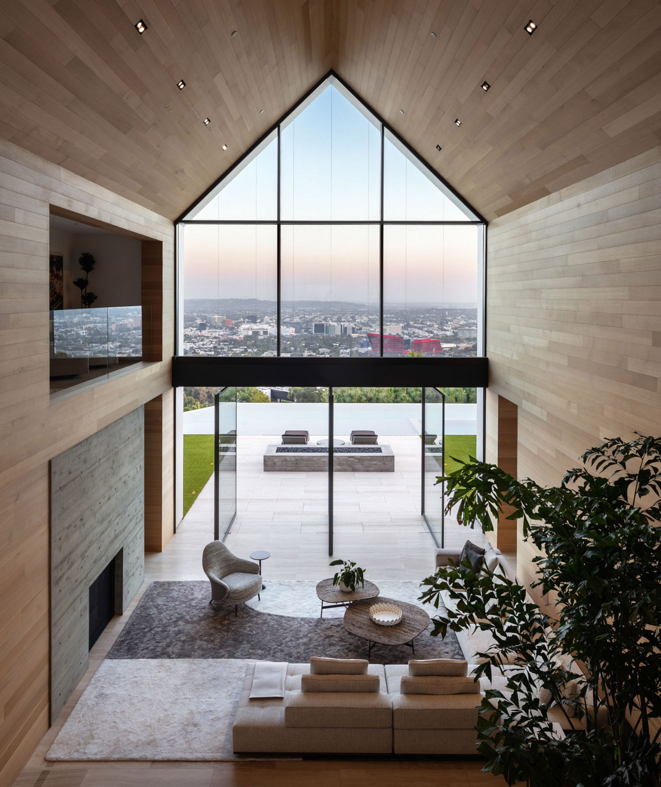 In each volume of Forest Knoll Drive House, huge windows open up the top of the gables to supply unparalleled views that have to be seen to be believed. There are large steel frames at the ends of the gabled structures, which allow for the amazing views of Los Angeles and windows and sliding glass doors are positioned on the front and rear walls of the residence to help bring the outside in.