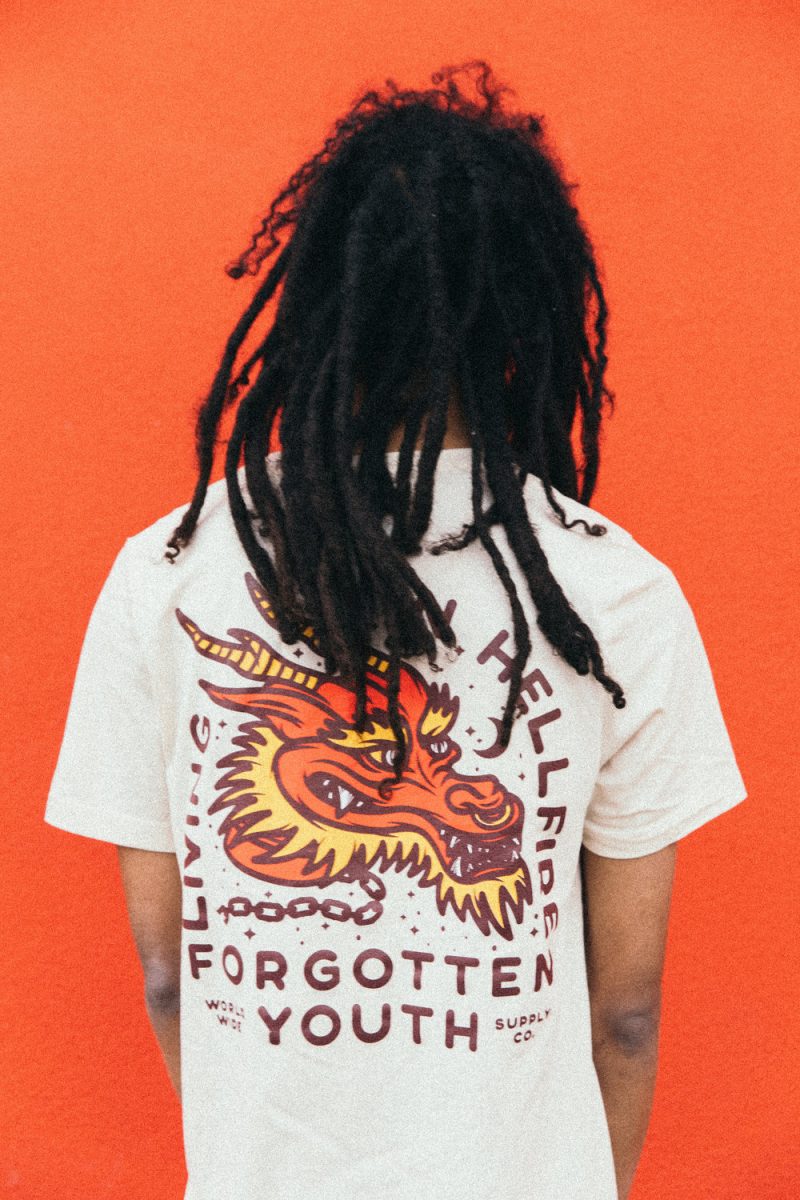 There is a lot that makes Forgotten Youth Supply stand out from the crowd but the most notable aspect is their desire to focus their attention on creating just two conceptual based collections each year which have been made in conjunction with a special artist who collaborate on the projects. Each one of these collections is then printed exclusively on a limited basis and you can only get your hands on them through the company’s own website. It’s this sort of small batch production with an emphasis on quality that we really appreciate here at Coolector HQ and there is a real tangible sense of quality to all their apparel.