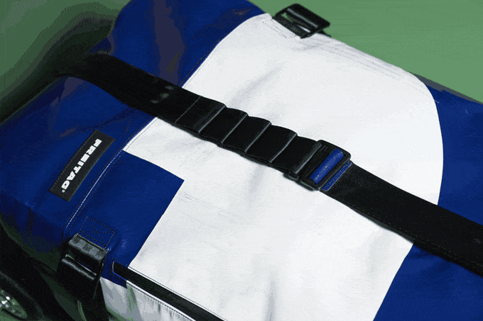 With a capacity of 85L when inflated, this extraordinary carry from Freitag certainly isn’t lacking in storage space and when it’s deflated and empty, it can be rolled away to take up a fraction of the space. The old truck tarpaulins used in the crafting of the bags from Freitag is a real selling point and something that differentiates them from the pack visually but it’s more than just the aesthetics that are of benefit here, this material provides a real resilience from the elements and general wear and tear.