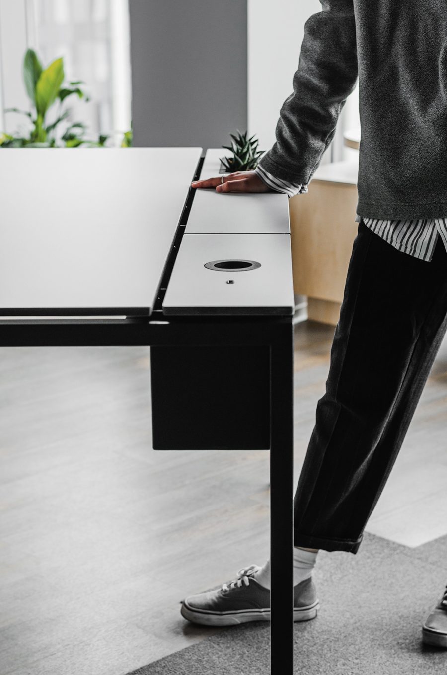 Designed with the tech inclined in mind, the G Table has a charging point specifically designed for Apple laptop chargers which is closed with valves and an integrated adapter for chargers, stationery, everyday carry essentials or even flower pots if you want to give a nature vibe to your workspace. The G Table has magnetic pad which will fix the cable from the hatch in the floor and make sure the visual impact of the table isn’t impacted by unsightly cables.