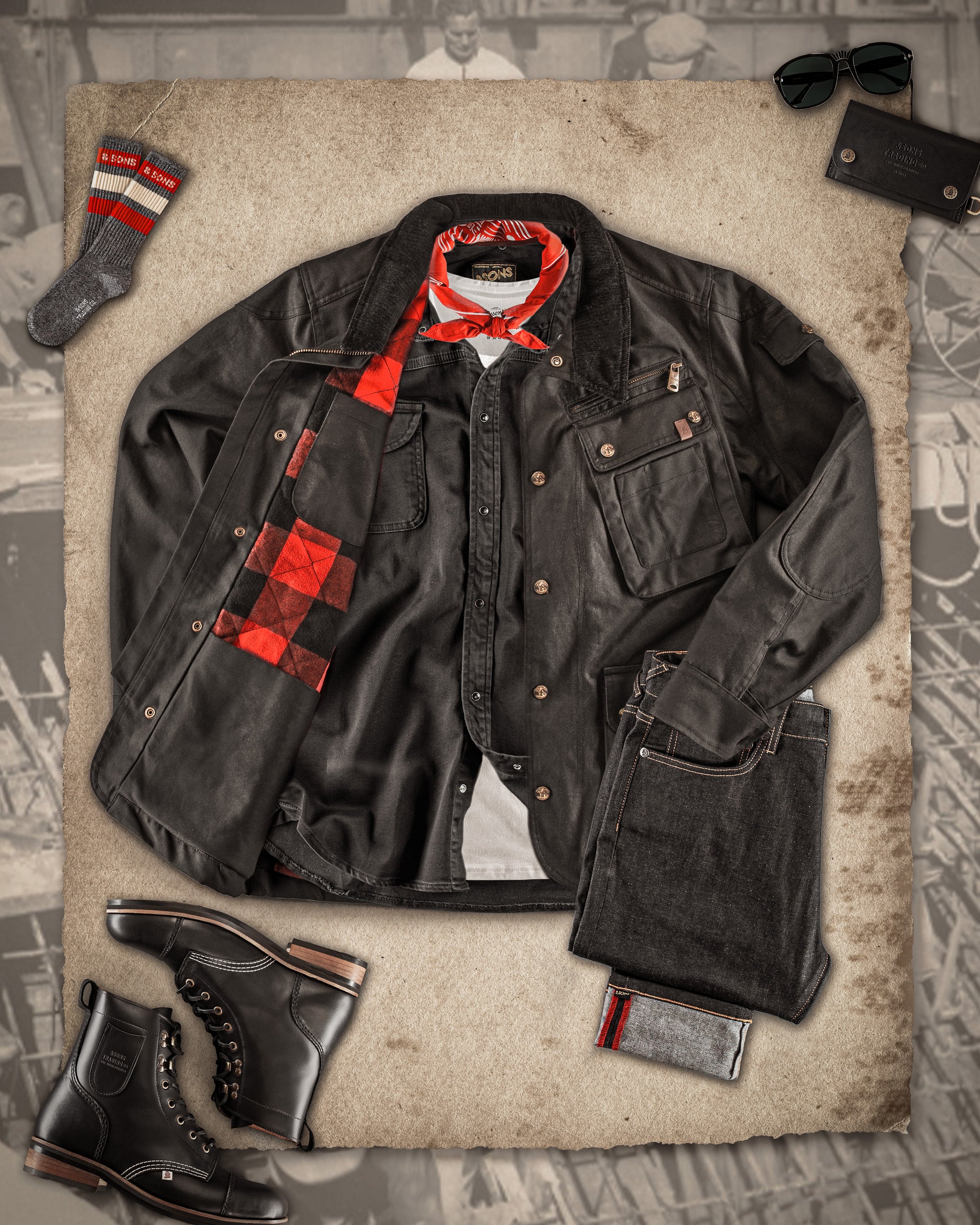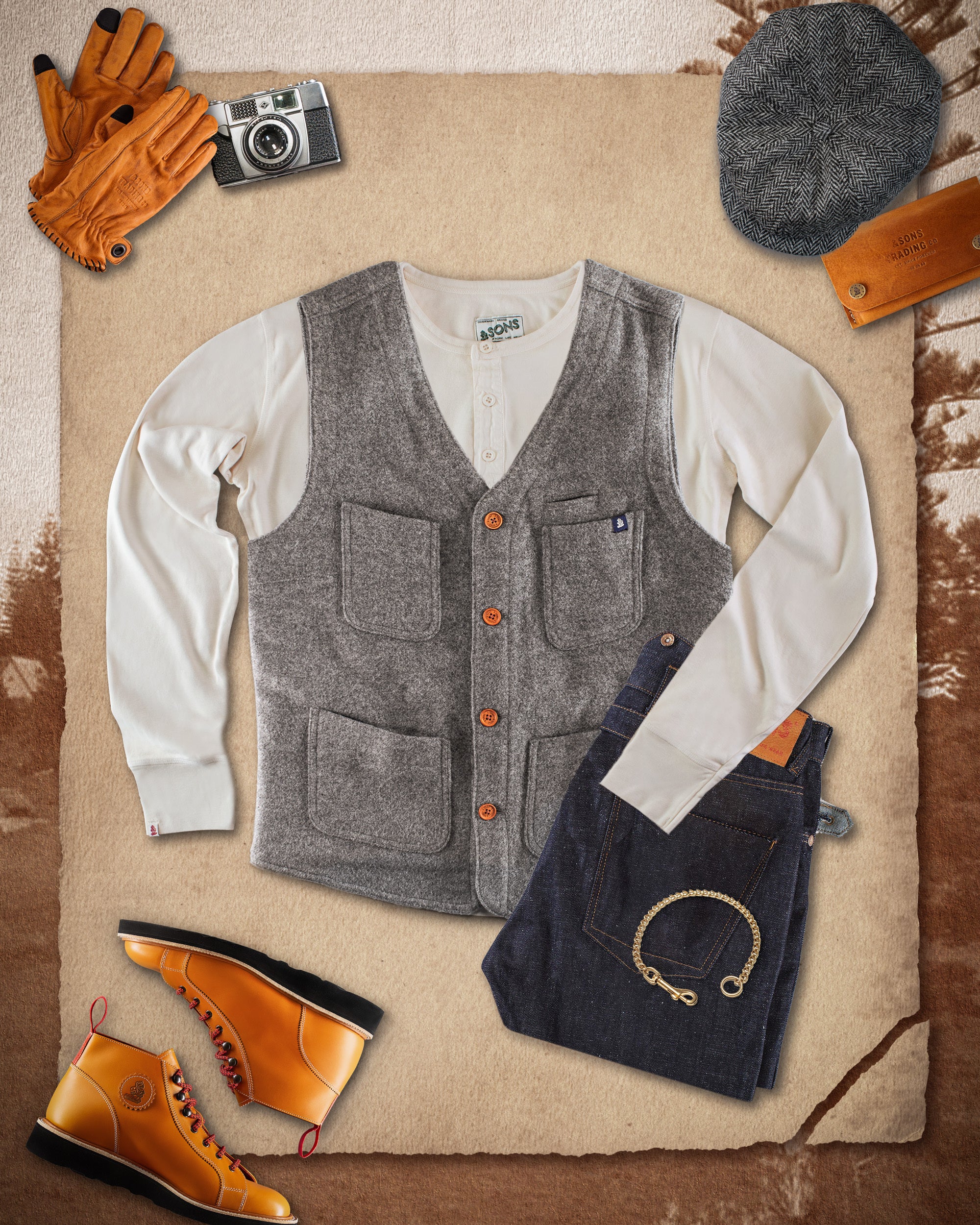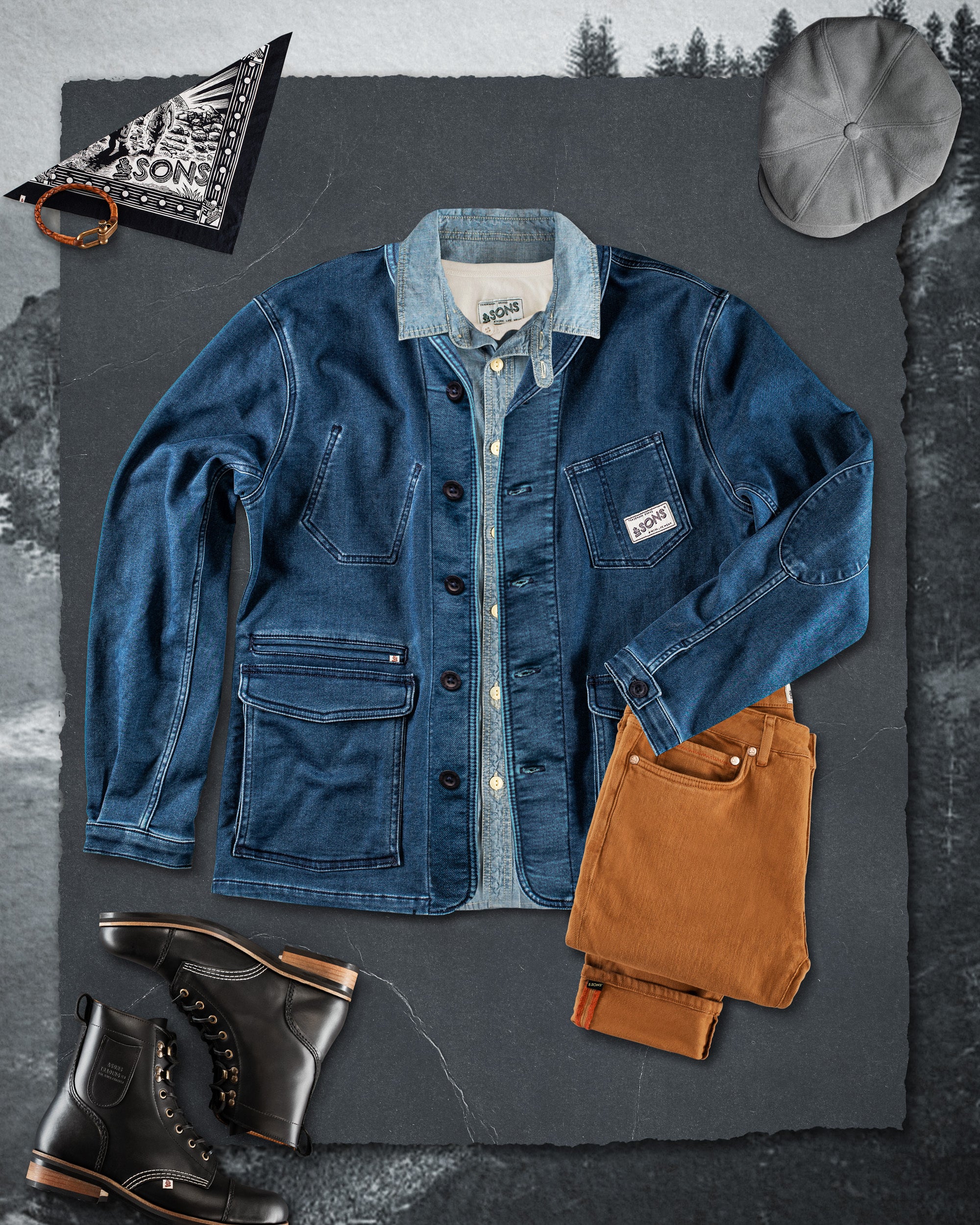 Layer the outfit with the &SONS Crafter Jacket for extra warmth and unrivalled style. Its indigo hue and no-nonsense construction make it a versatile outerwear option that changes your ensemble without the hassle. Finish off the outfit with the Black Drovers, which provide a heady mix of rugged charm and refined sophistication.